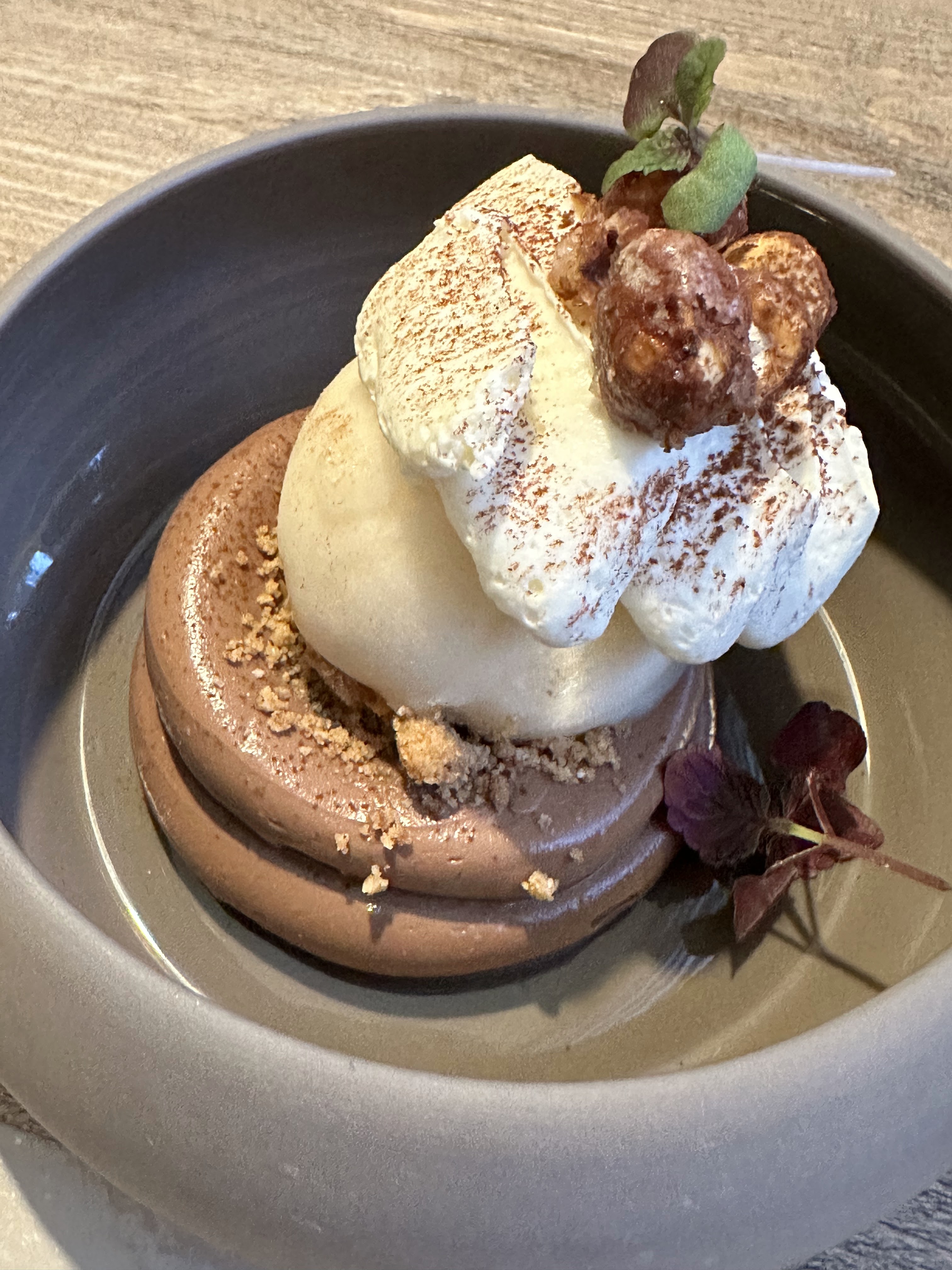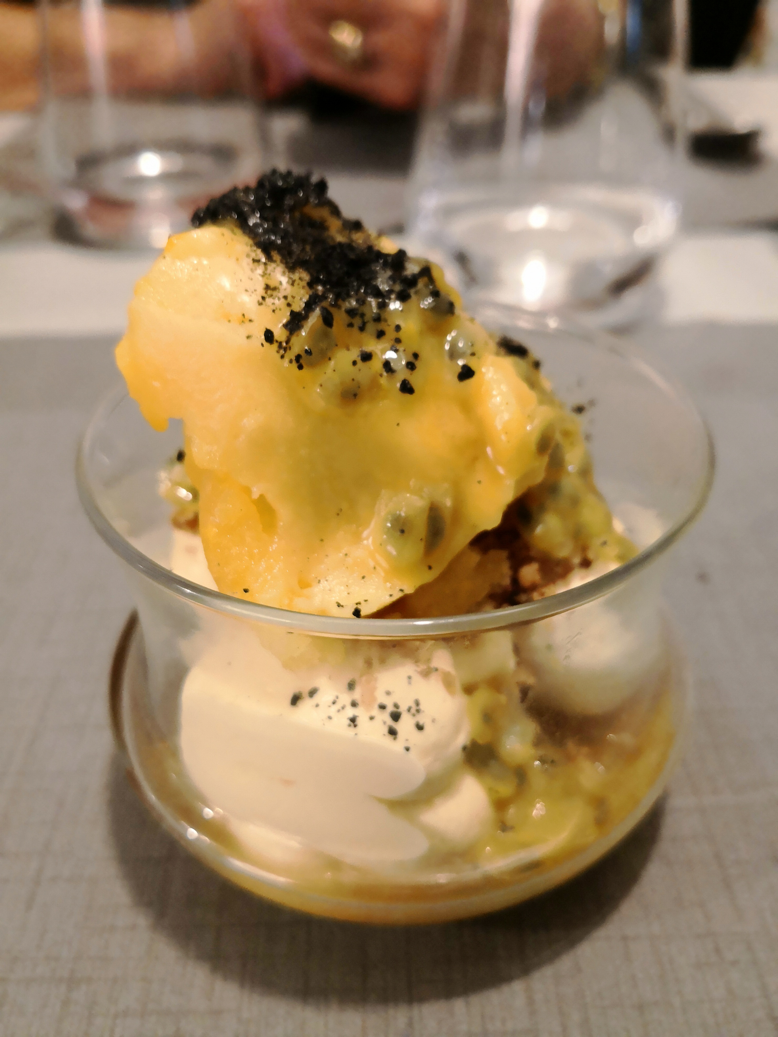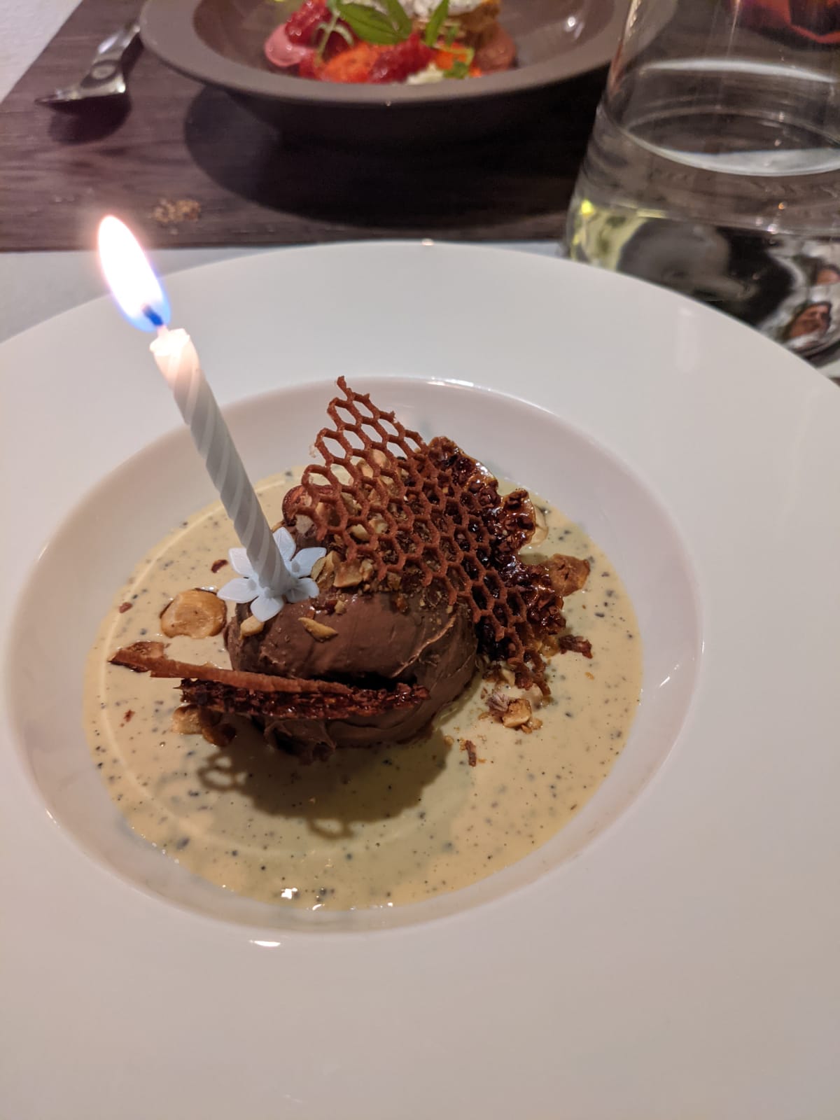 Un accueil chaleureux et très agréable, un service en 3 temps plein de surprise, ou le mélange subtile des saveurs vous enchante et vous interroge. Nous avons partagé également une assiette de fromages exquis avant le dessert. 2h15 … Dommage que ce soit si long.cependant je recommande vivement, ne passez pas à côté !