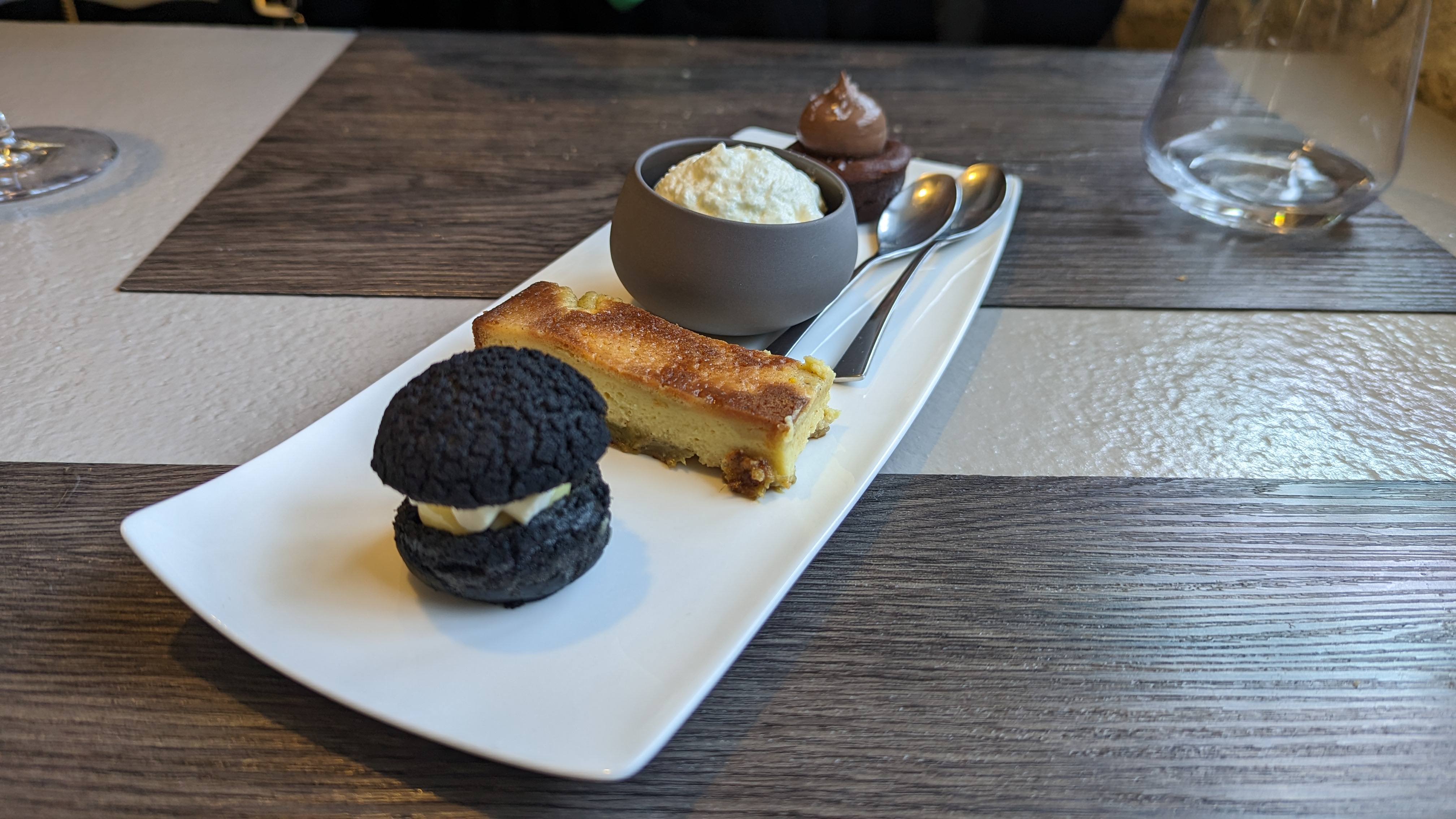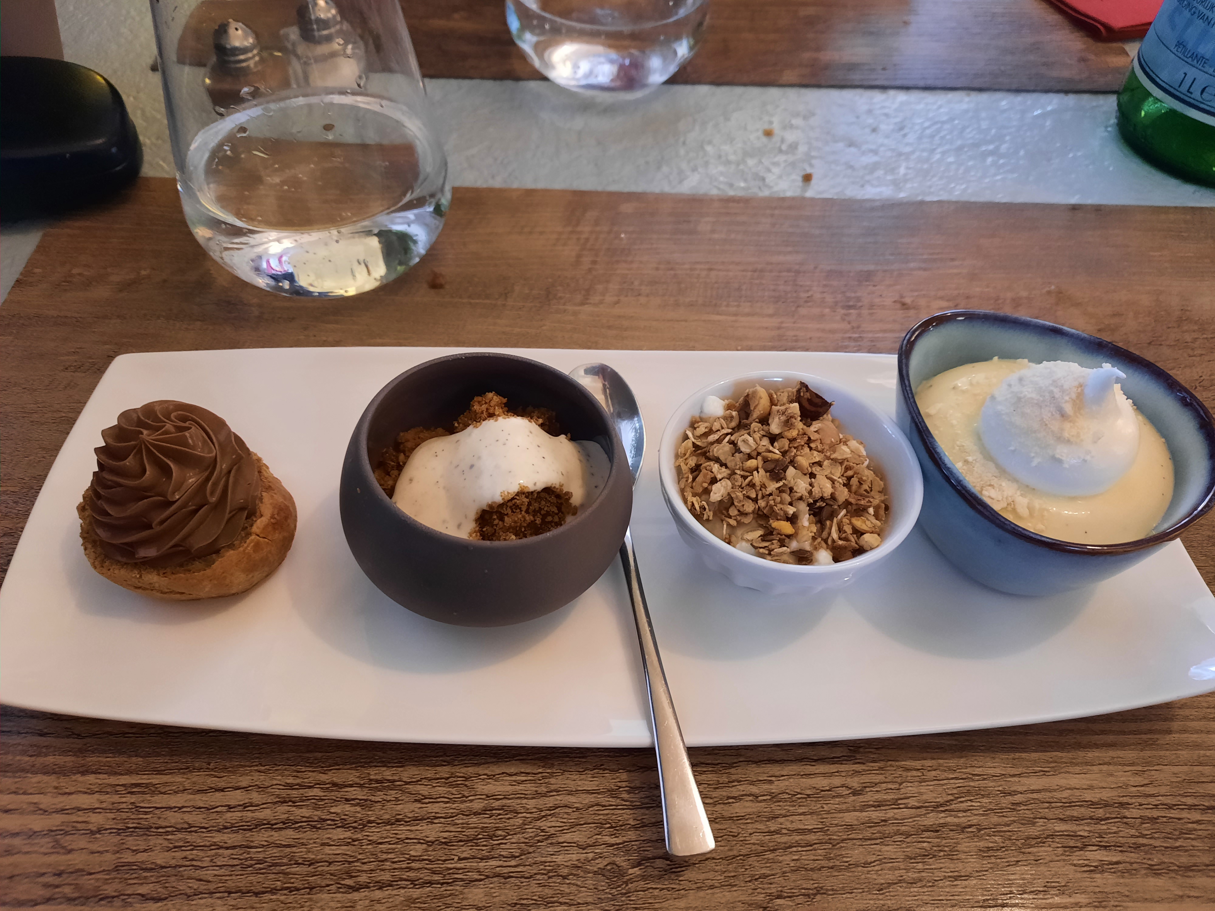 Un repas au top ! Restaurant authentique, service irréprochable et goût raffiné. Petite carte avec choix de deux entrées, deux plats et ardoises de fromages ou desserts. Prix vraiment abordables. Déjeuner en semaine au mois de novembre, réservation faite en amont. Nous recommandons vivement 49€ avec un vers de vin entrées/plats et un seul dessert pour deux amplement suffisant. Espace jeux pour les enfants au top ! Resto Kids Friendly !
