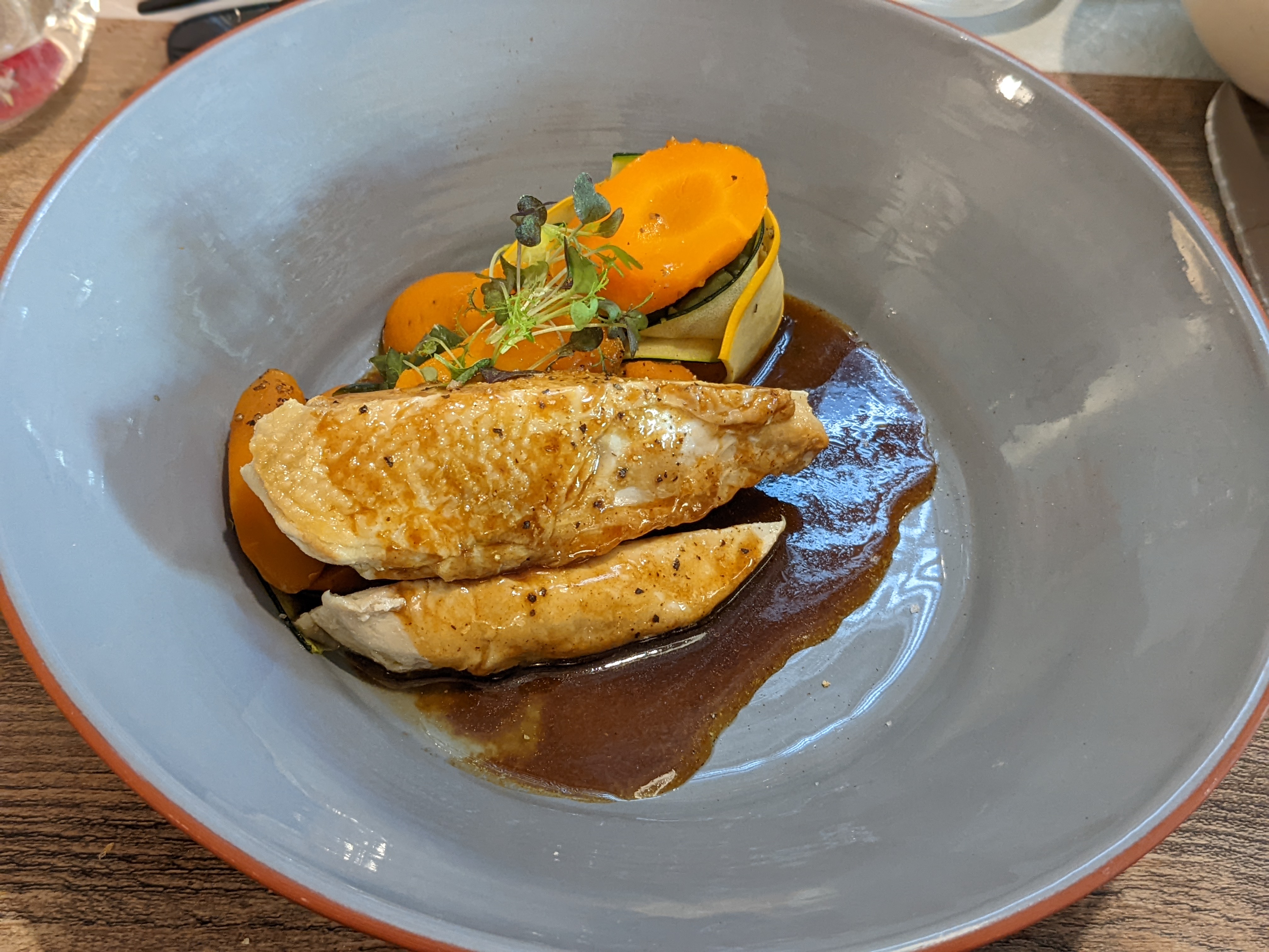 Très bon accueil, cuisine fine et recherchée aux saveurs étonnantes. Les portions sont assez peu copieuses et le plat végétarien manque d’une source de protéine (légumineuses, par exemple). Il est quand même appréciable d’avoir une alternative végétalienne ! On sent que les matières premières sont qualitatives et locales, c’est très appréciable.