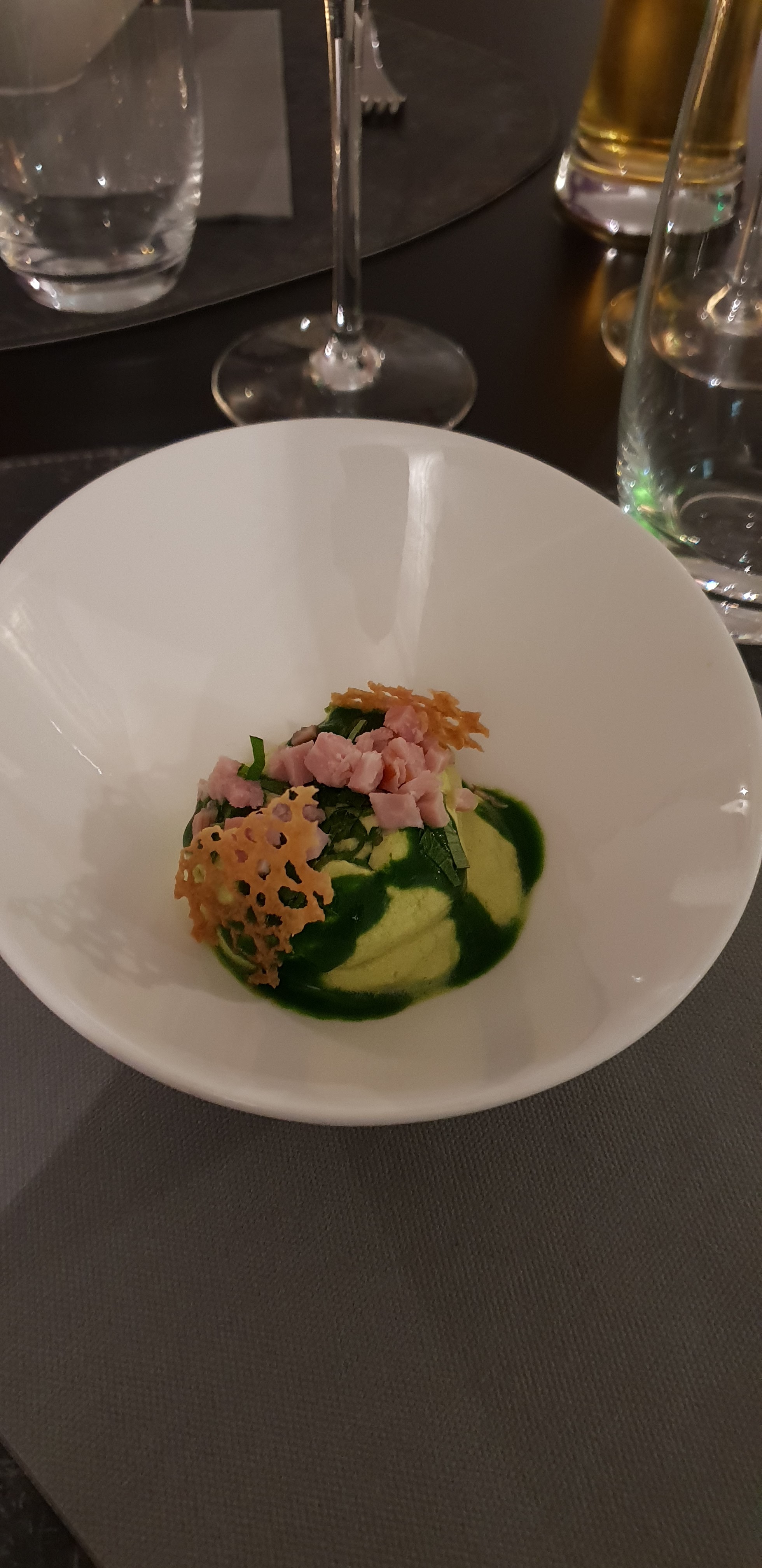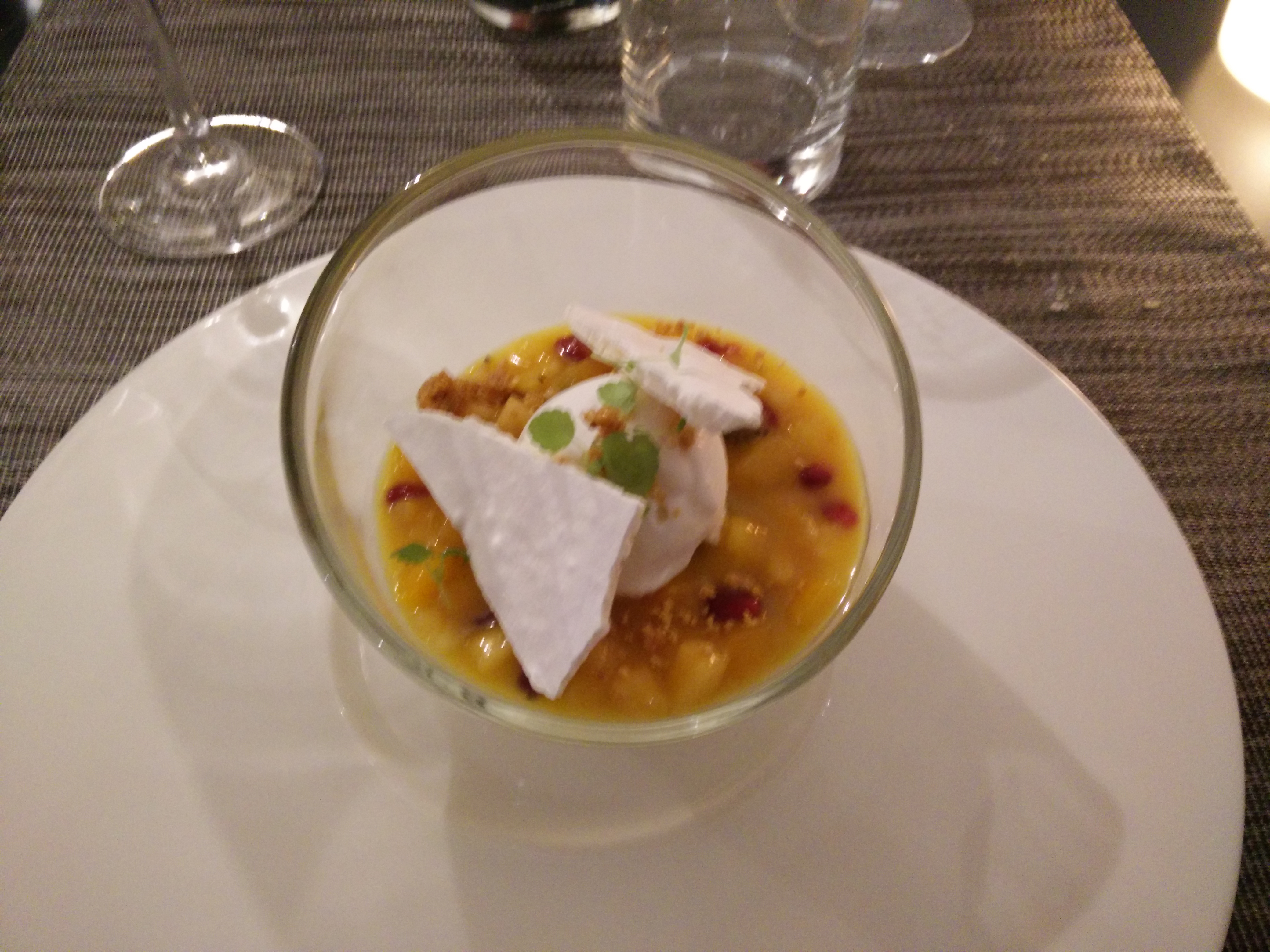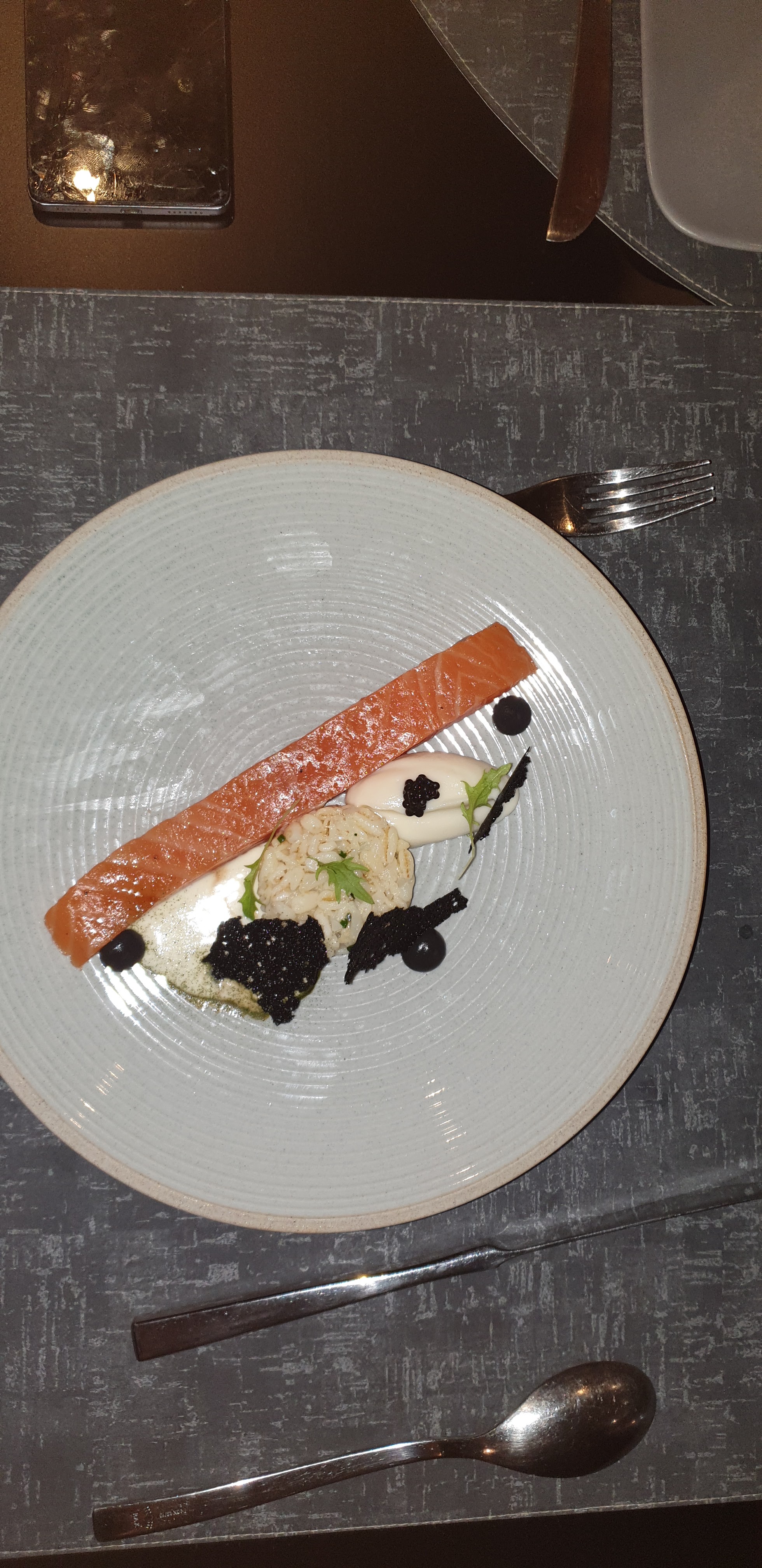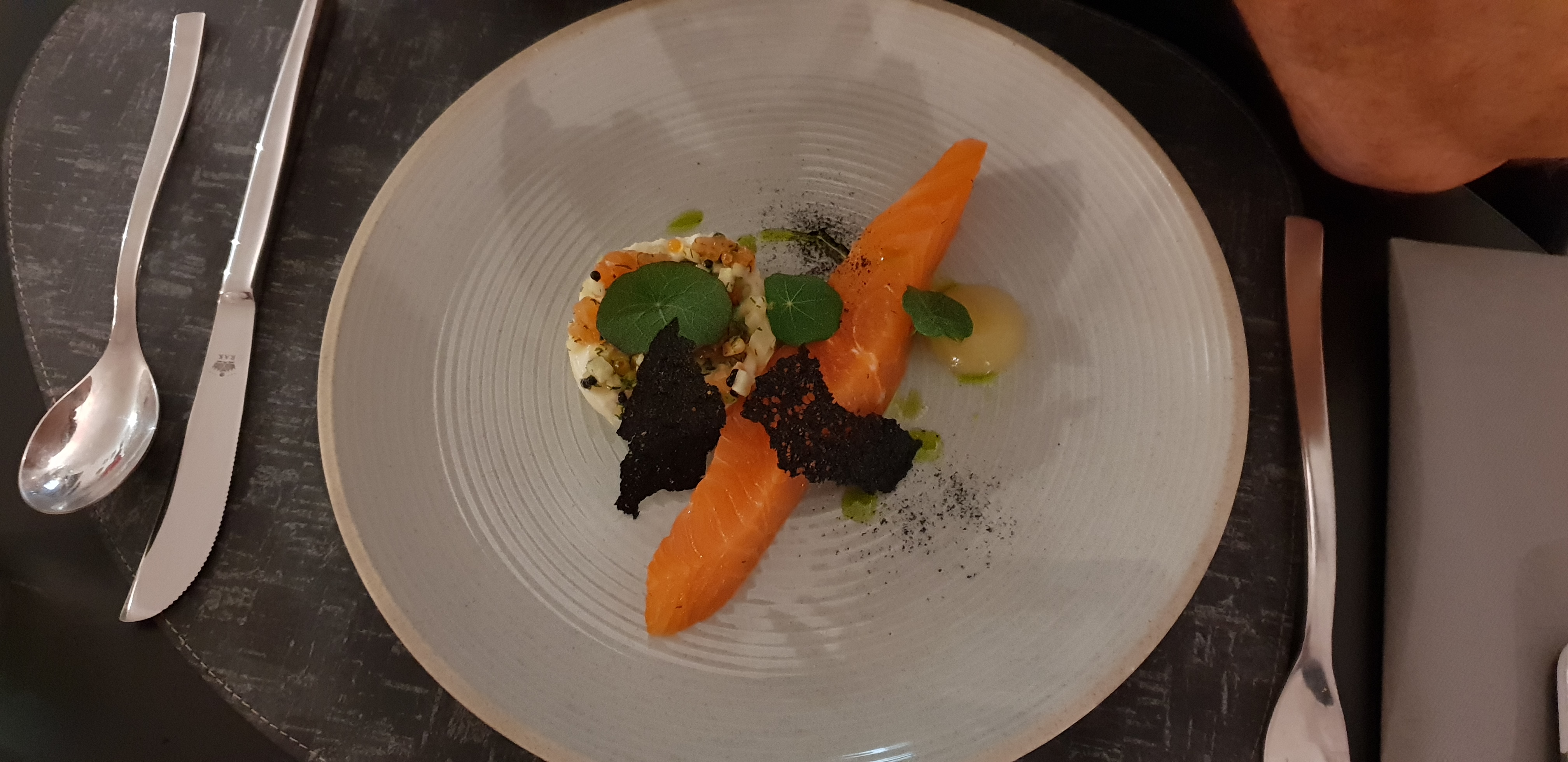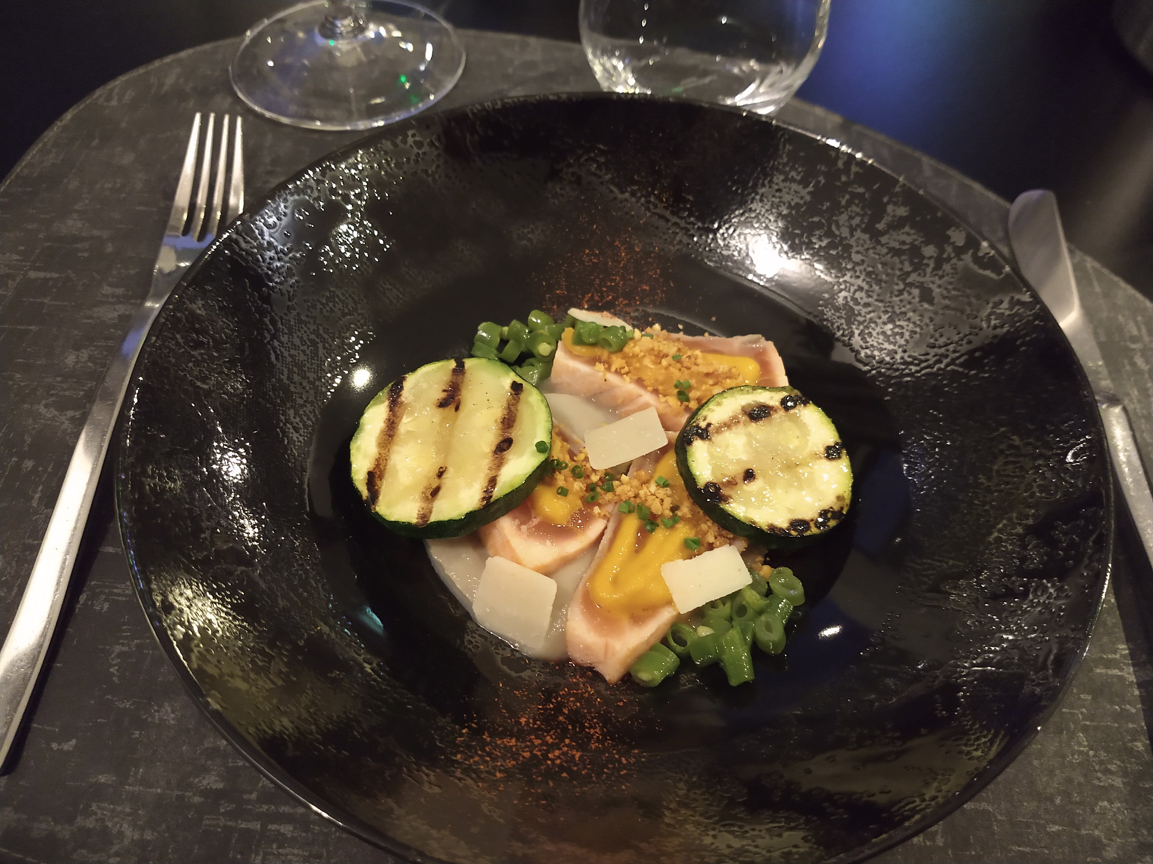 Un dîner en 4 services, aux plats joliment présentés et au goût qui émoustille les papilles. La déco chic et sobre donnent une ambiance cosy et feutrée. Le personnel est agréable, souriant, le service est au top