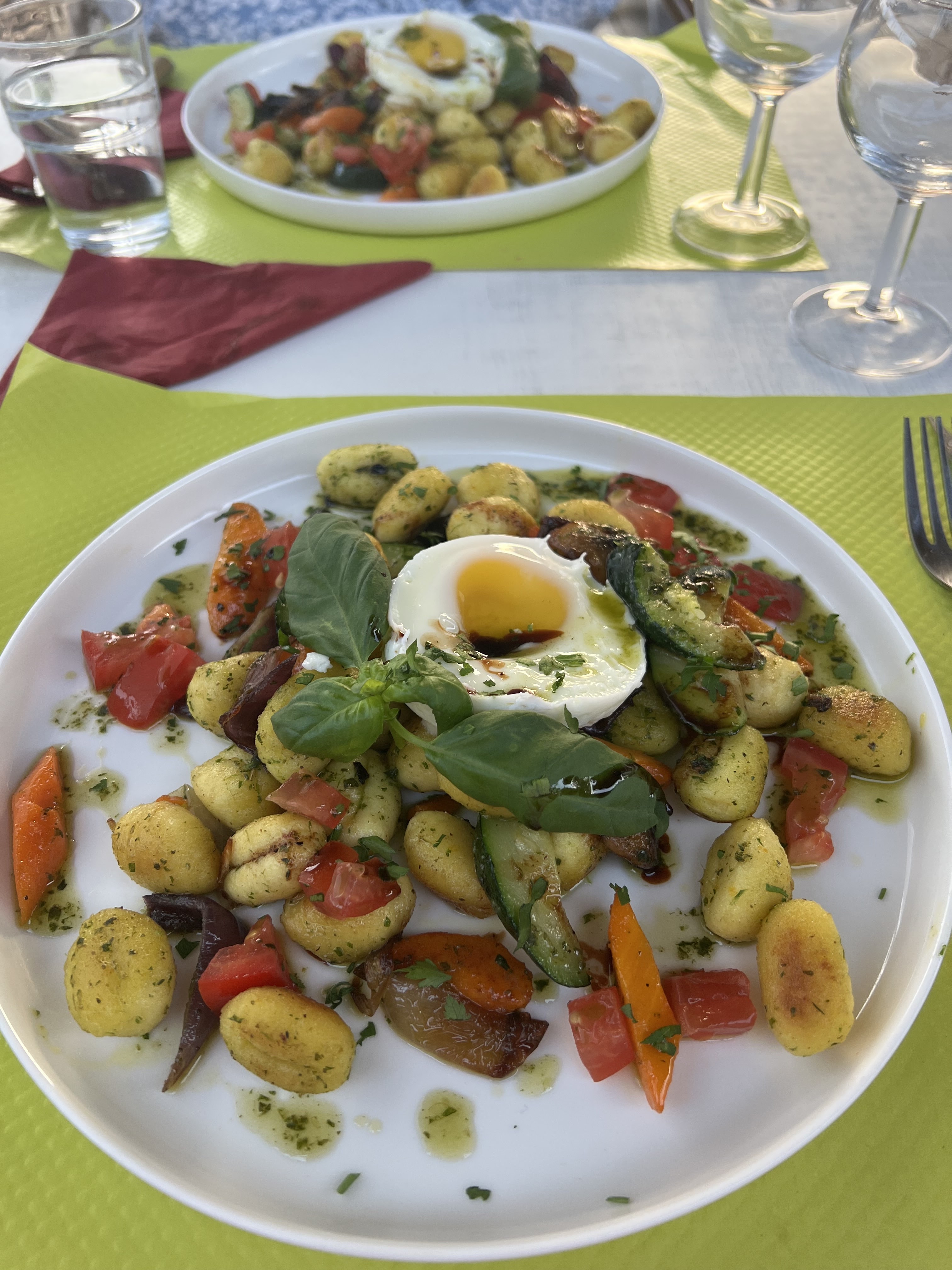 Superbe déjeuner ! Nous avons pris le plat de gnocchis accompagnés de délicieux légumes frais, puis en dessert des fraises qui viennent du coin Vraiment un régal, nous sommes ressortis enchantés ! Avec un super service! Merci !