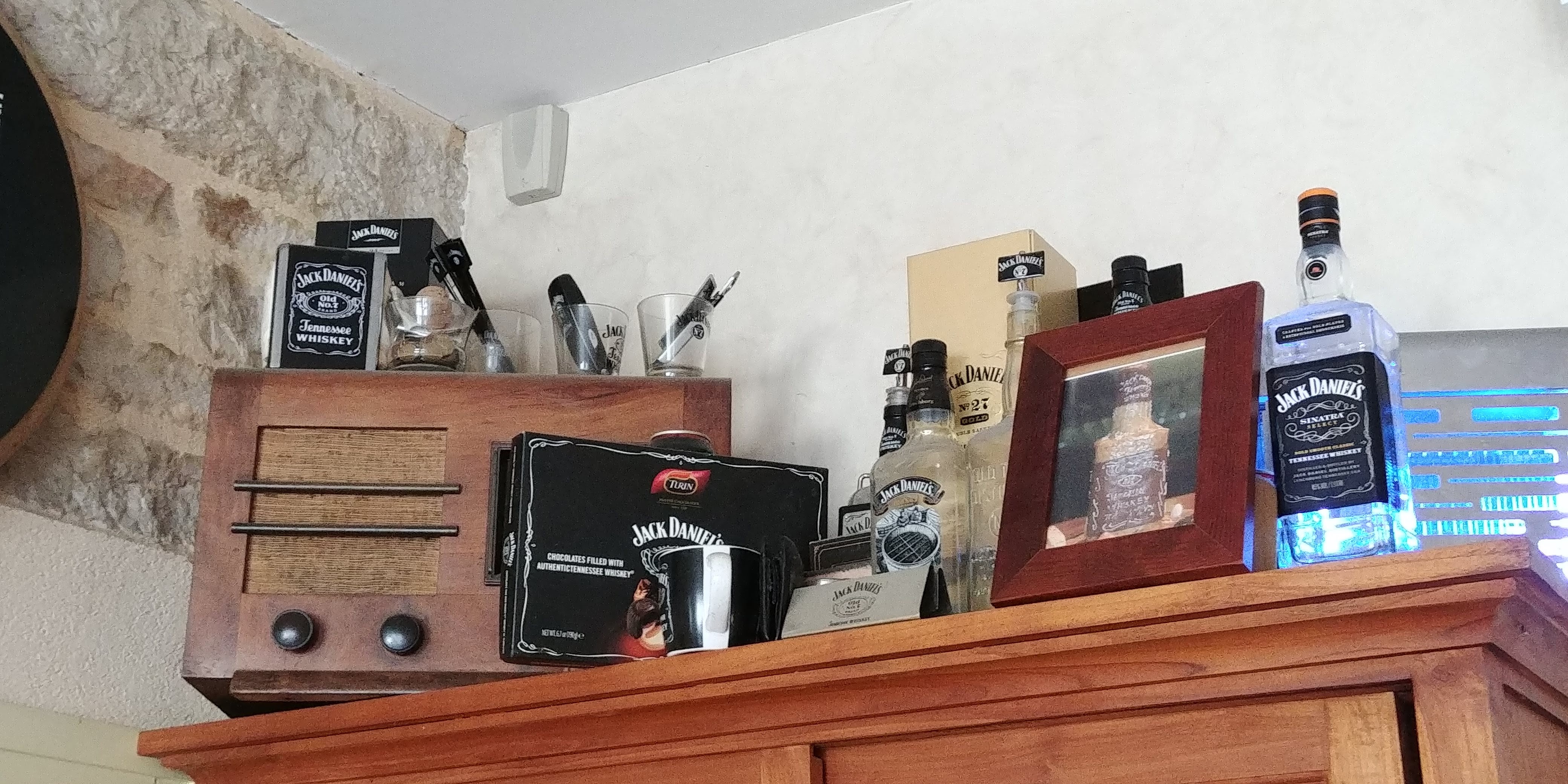 Joli bœuf bouguignon avec les amateurs de Jack Daniels. Je me suis arrêté pour un petit déjeuner lors d'une dégustation de vin avec ma famille américaine. Escargots, bons fromages et crème brûlée. Puis, quand je suis allé aux toilettes, j'ai trouvé le trésor des souvenirs de Jack Daniels. Un petit goût de chez soi au coeur de la Bourgogne. Je suppose que les gens qui apprécient le bon vin apprécieraient également une bonne purée aigre-douce.