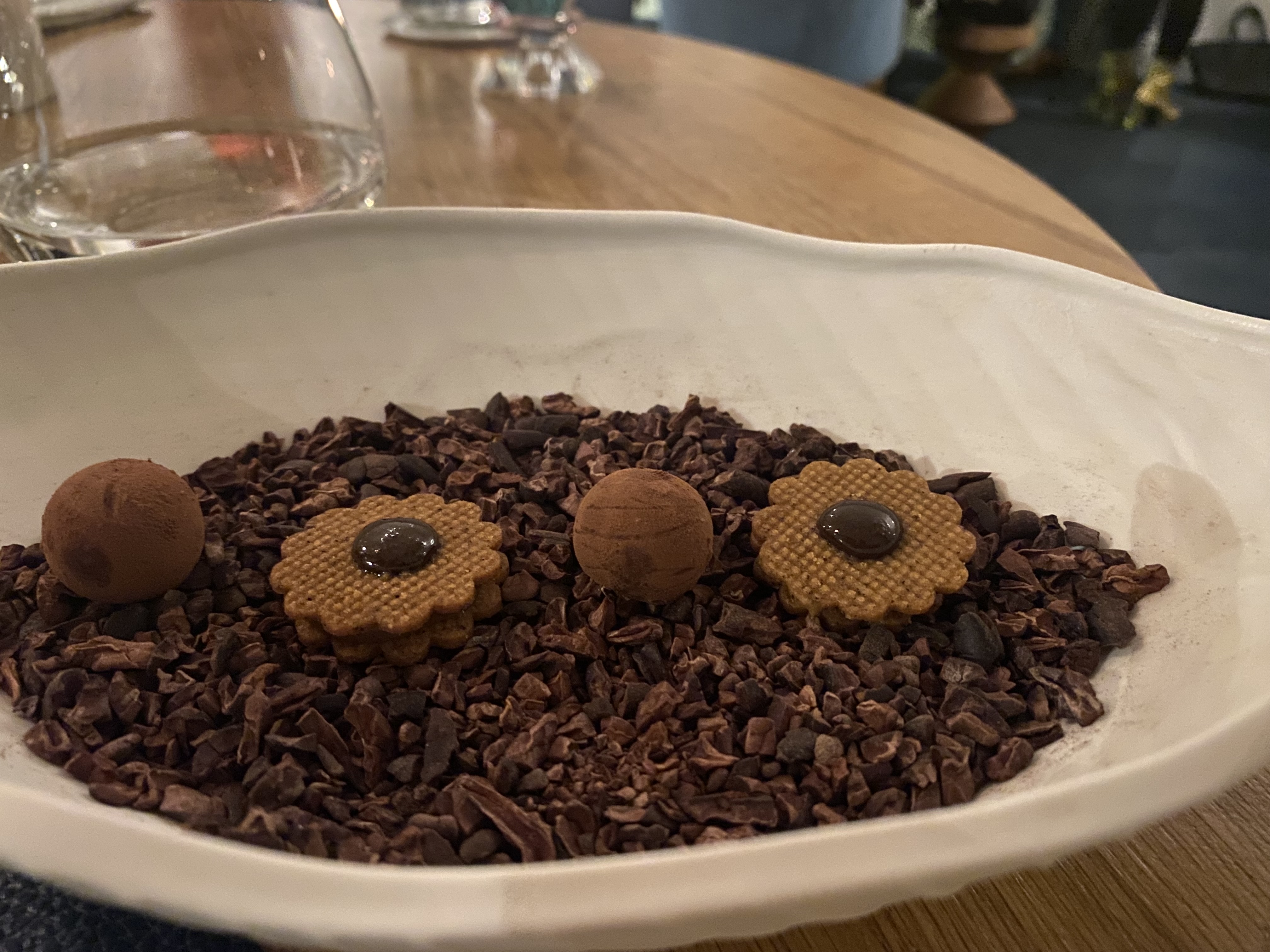 Le chef nous propose des assiettes mettant à l'honneur des produits simples d'exception. Le tout avec un parti pris durable. Mention spéciale pour le dessert café et chocolat qui m'a plu pour sa légèreté et ses différentes textures. Le lieu est chic et permet le temps d'un repas de s'évader des tumultes du quotidien. Un service en salle agréable dommage que l'on ait pas pris le temps de nous expliquer le dessert mais cela a été fait pour les autres tables...un oubli certainement.