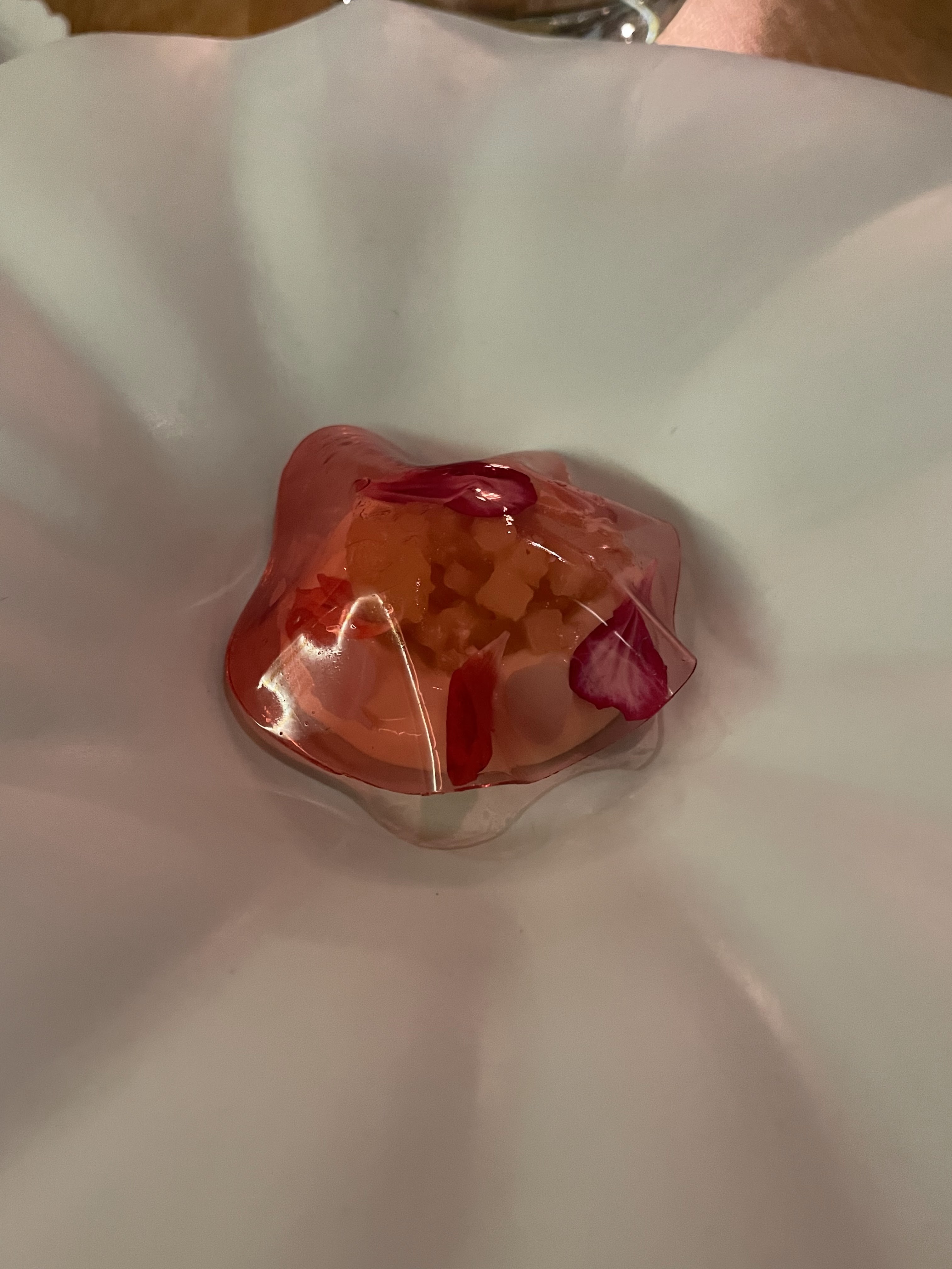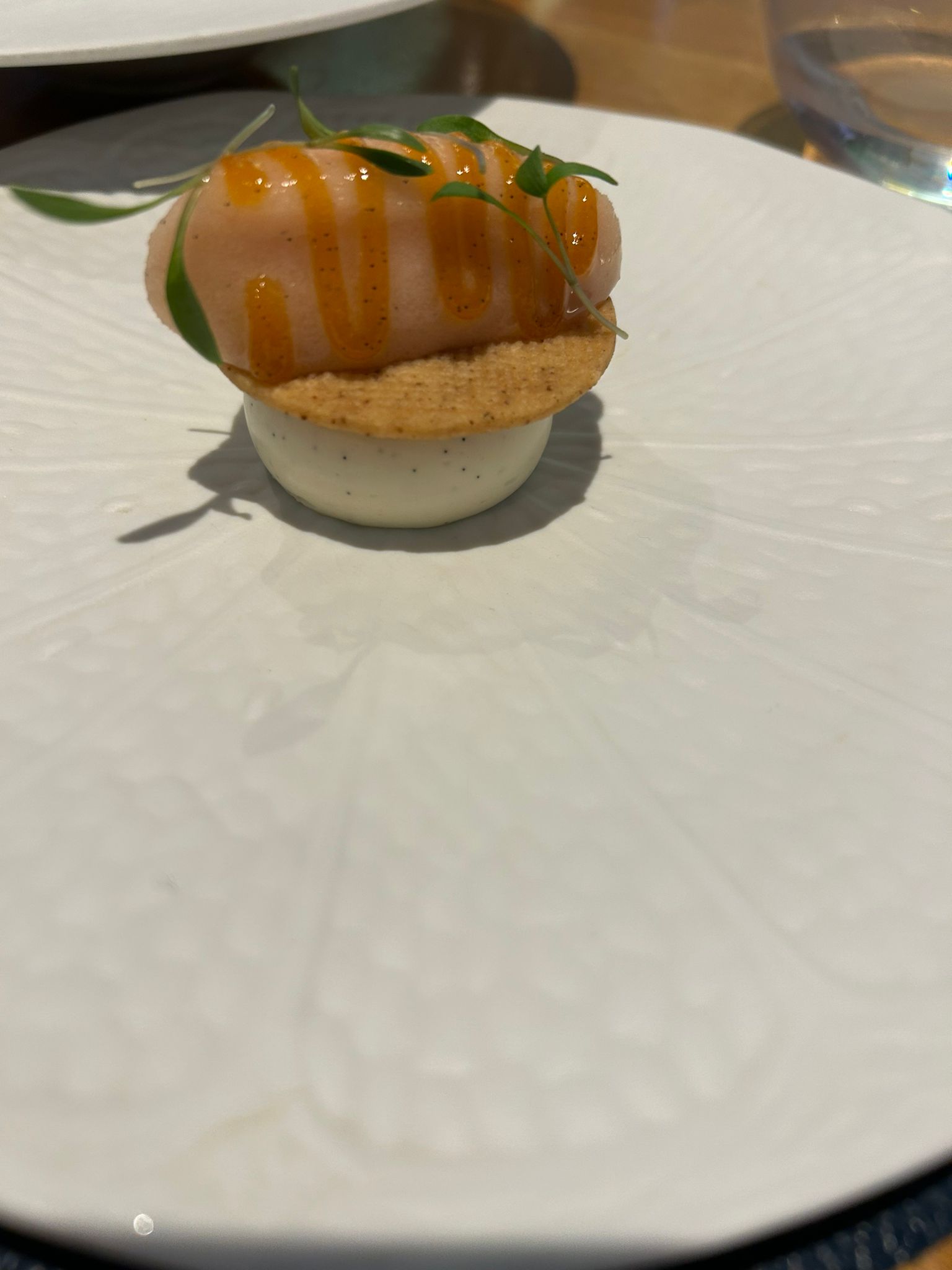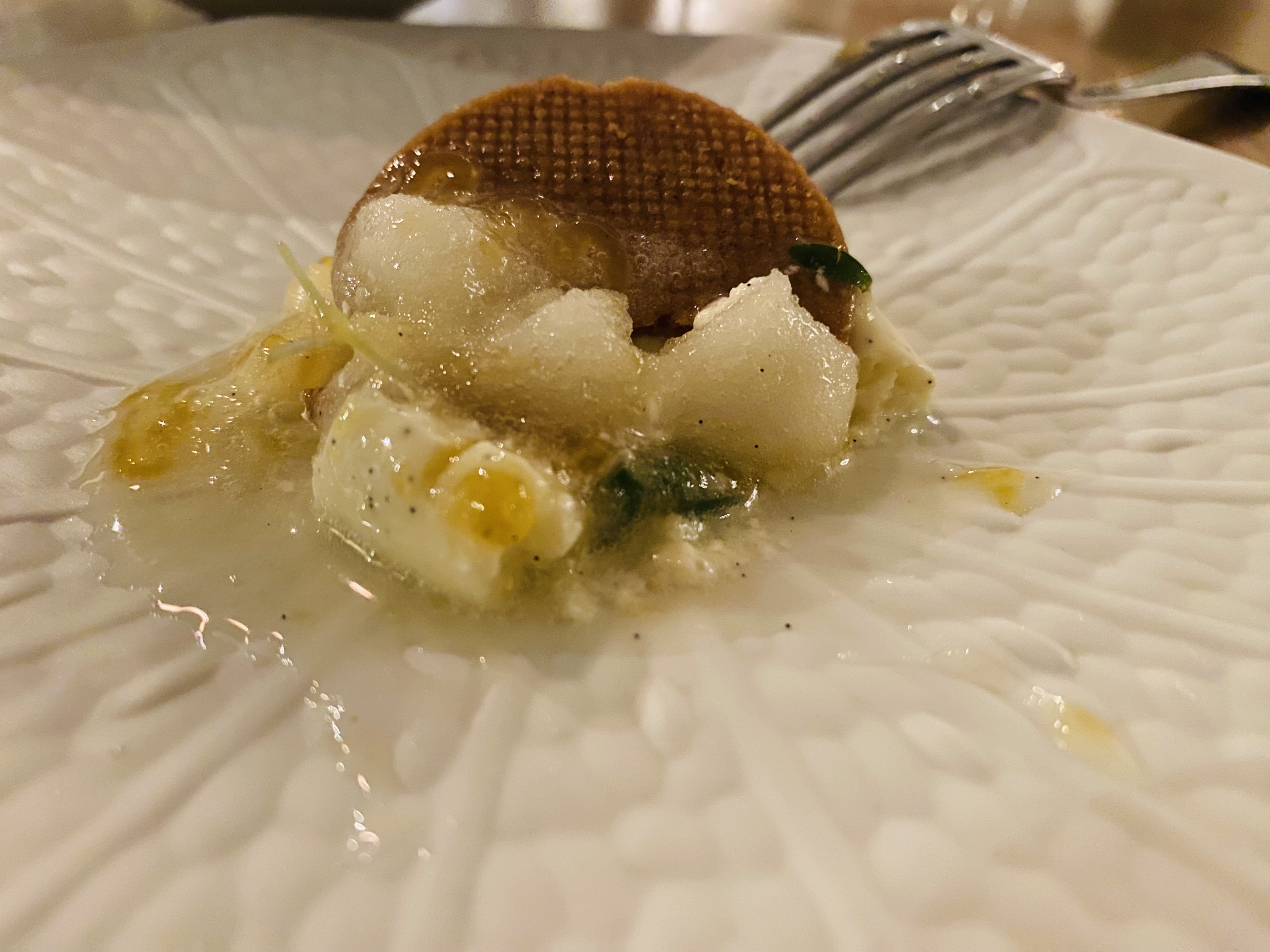 Merci pour ce moment c etait top Merci aussi à ta brigade ils sont vraiment top Le sucre qui fait du bruit dans la bouche qui surprend.. j ai adoré Merci a tes 30 employés Jeff