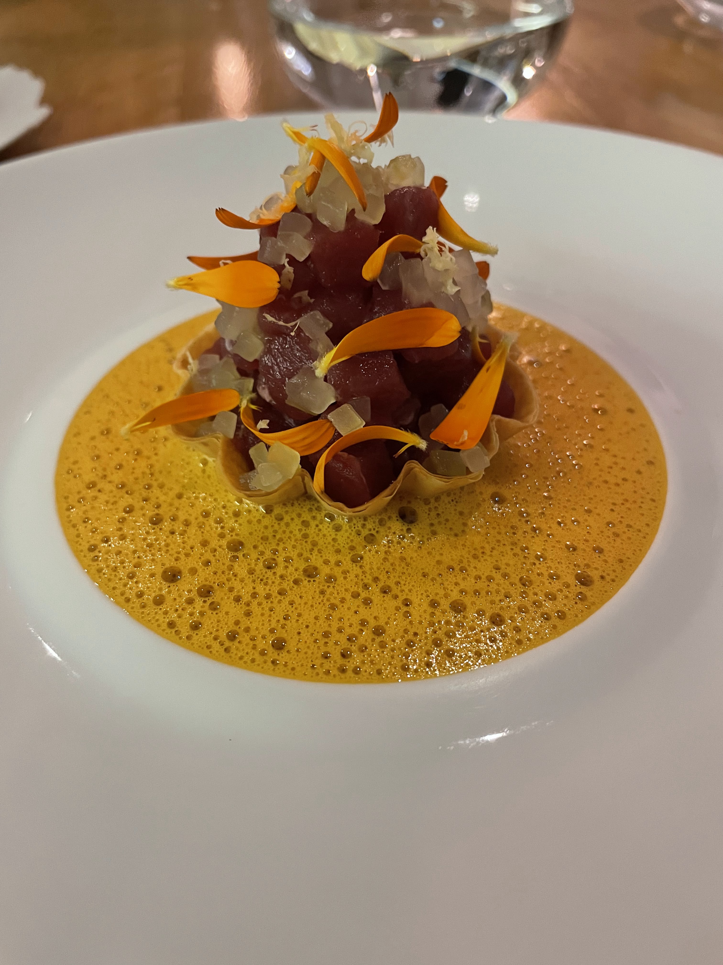 Quelle experience.....du bonheur pour les yeux (deco salle, couleur dans les assiettes), du bonheur pour les papilles (melange des saveurs, tous les plats du menu degustation etaient a tomber). Un plus pour l equipe a l ecoute, harmonieuse dans le service et souriante.