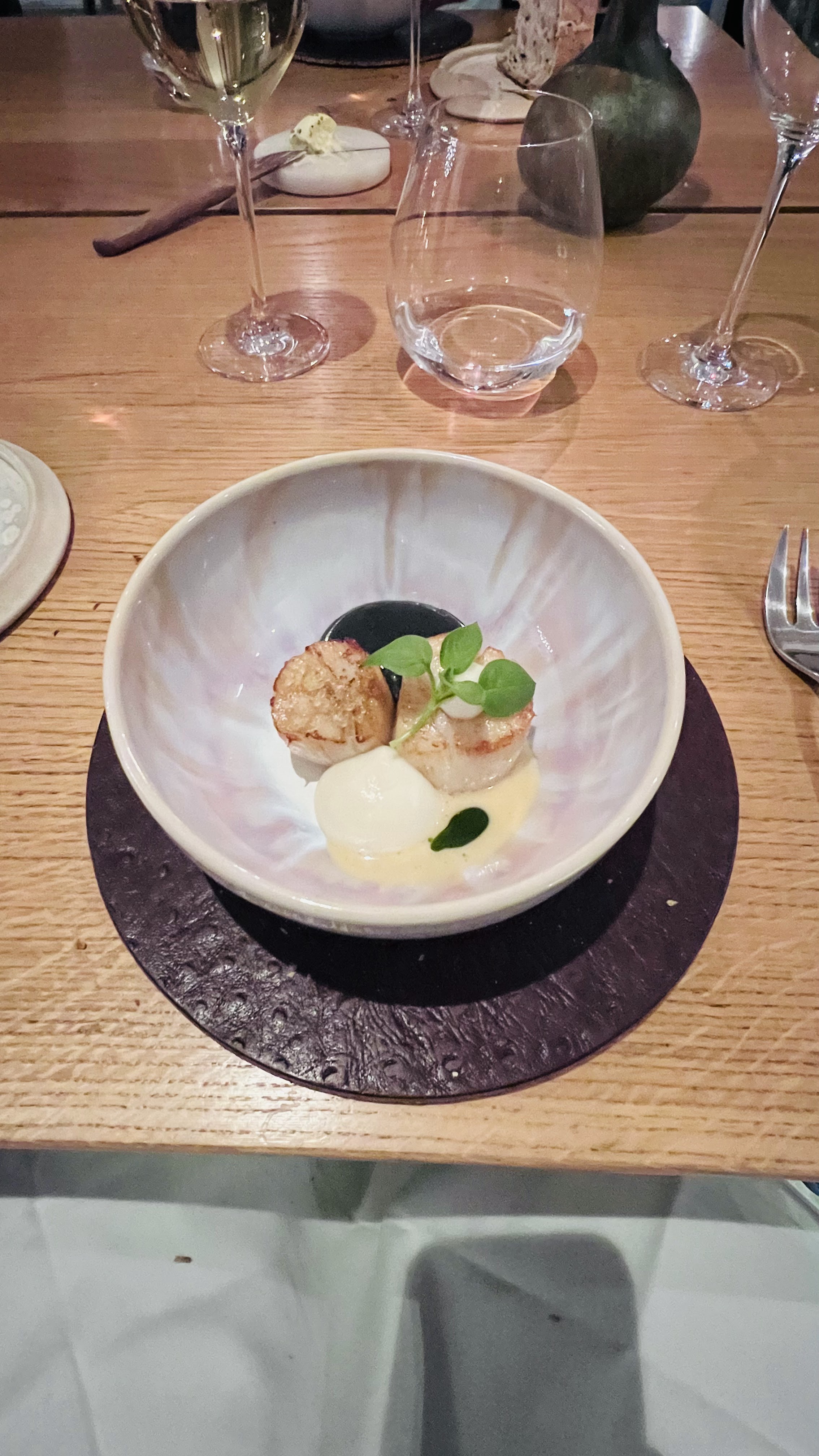 Nous avons beaucoup apprécié notre soirée dans le cadre soigné et moderne du restaurant. Nous avons pris deux menus dégustation avec accord mets et vins. Tout était parfait du début à la fin.