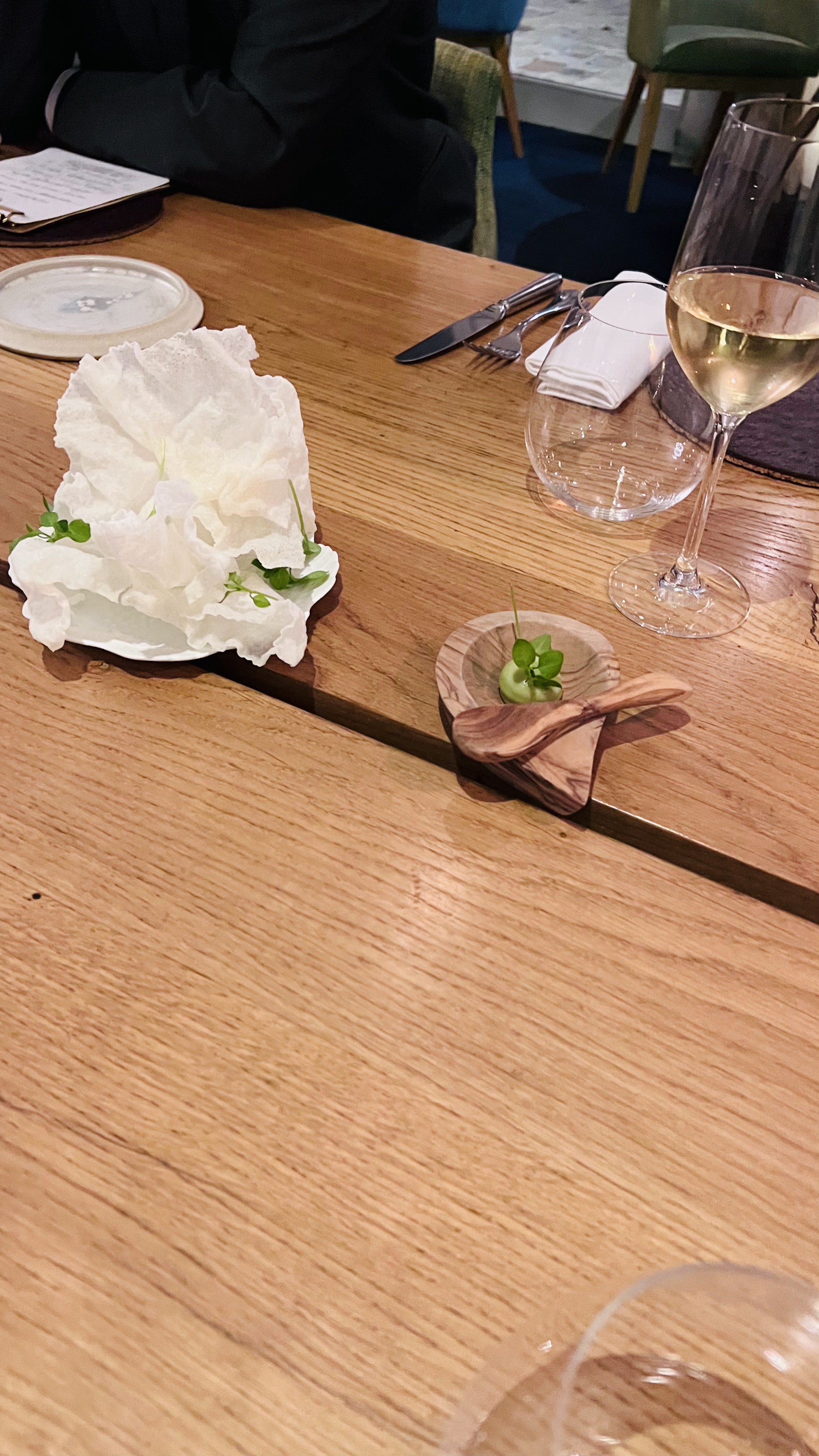Cadre très paisible et élégant, un pouf pour poser le sac à main, comme au Japon, une cuisine raffinée, pleine de saveurs et généreuses. Accords mets vins parfaits. Personnel aux petits soins. Je recommande vivement. Nous y retournerons!