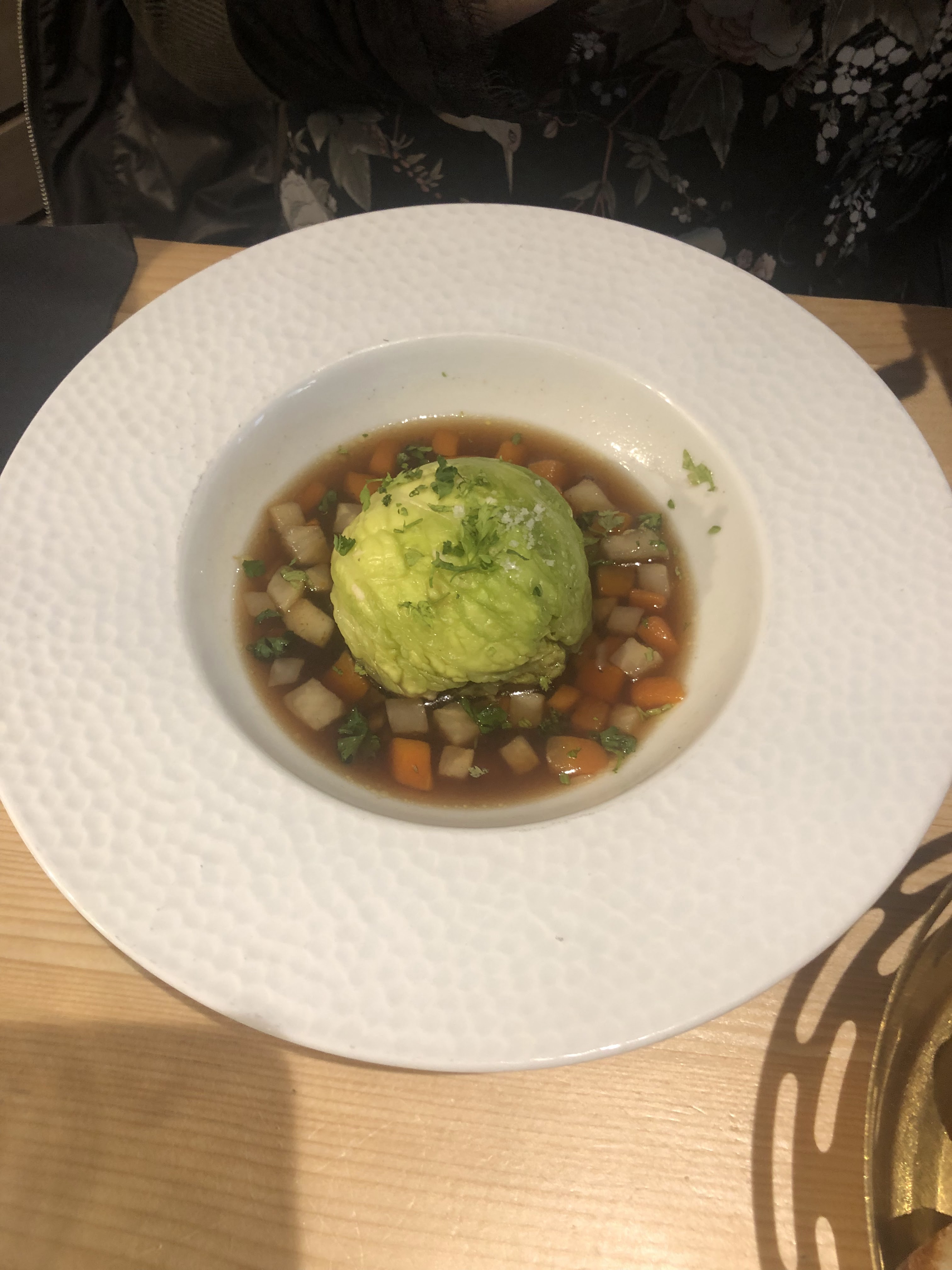 Posté le 26/12/2023 à 20:56"Beaucoup de potentiel mais nous attendions mieux d'un restaurant du guide Michelin. Détails : - Ravioles de crustacés: Les ravioles étaient bonne mais le bouillon n'avait pas de goût. Trop fade. - Pâte en croûte de cochon: un peu fade aussi, mériterait plus de goût et un plus de générosité (les tranches sont fines). - Saint Jacques rôties: une assiette bien dressée, 3 belles saint jacques mais la sauce hollandaise à l'orange était un peu trop prononcé. - Mignon de veau: très bon dans l'ensemble mais assez petit. L'espuma aux cèpes était excellent 👍🏻 - plateau de fromage: beaucoup trop petit. Et servir du cantal jeune c'est dommage... un entre deux ou du cantal vieux serait un meilleur choix. - Texture de noix de coco: original et très bon! Rien a redire. - Tarte aux pommes: décevant. Une version revisitée très petite avec peut être un quart de pomme et une toute petite boule de glace. En sommes, des plats originaux et un menu sympa, mais ça manquait un peu de saveur et de générosité. Personnel très sympa 👍🏻"