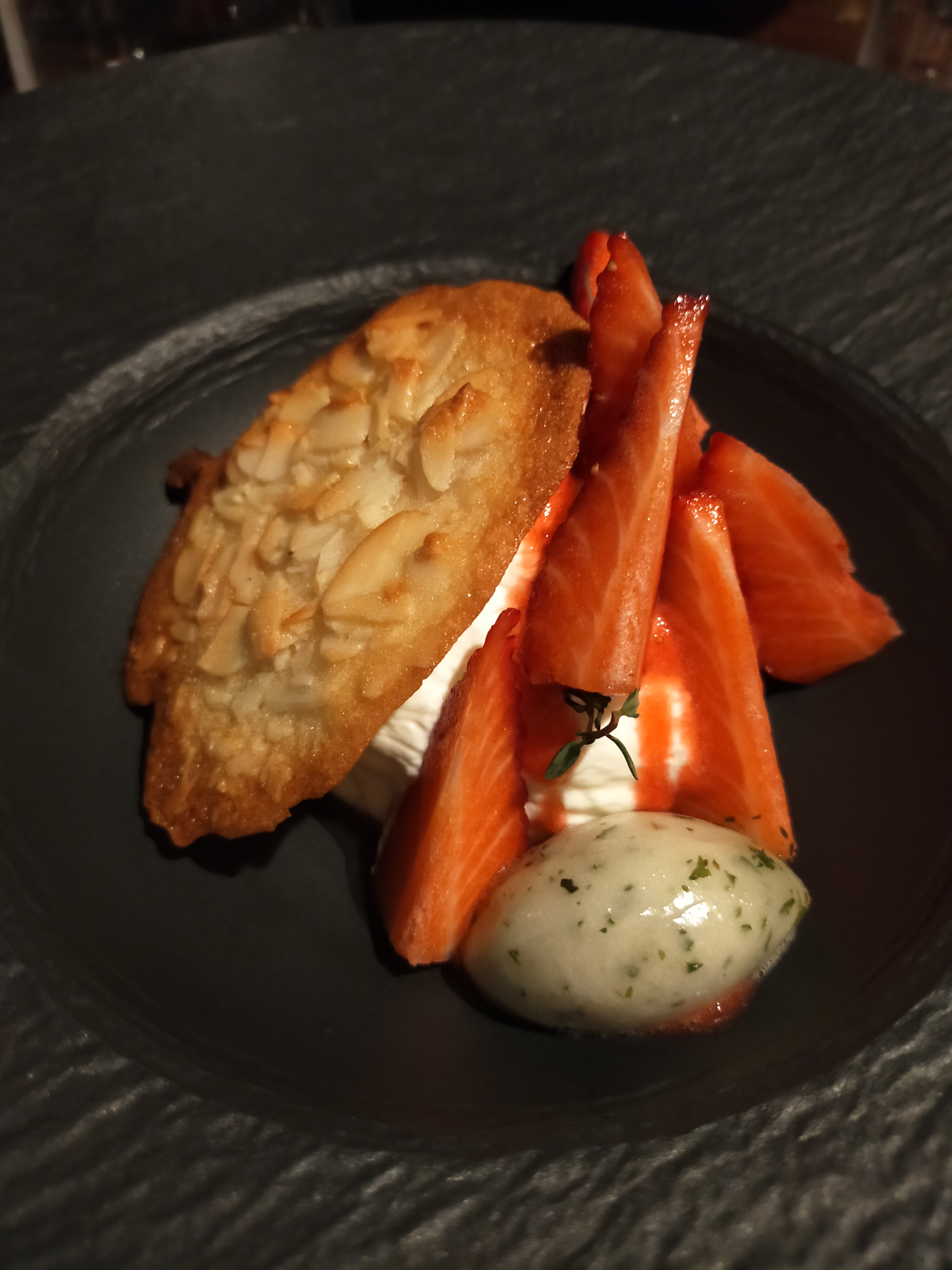 Posté le 27/10/2023 à 21:43"Juste un petit regret concernant le dessert déclinaison autour le la mure; les fines tranches de brioche n'ont selon moi pas leur place dans cette assiette, ni la crème au beurre qui aurait avantageusement pu être remplacée par de la chantilly maison ou une mousse de fruits rouges."