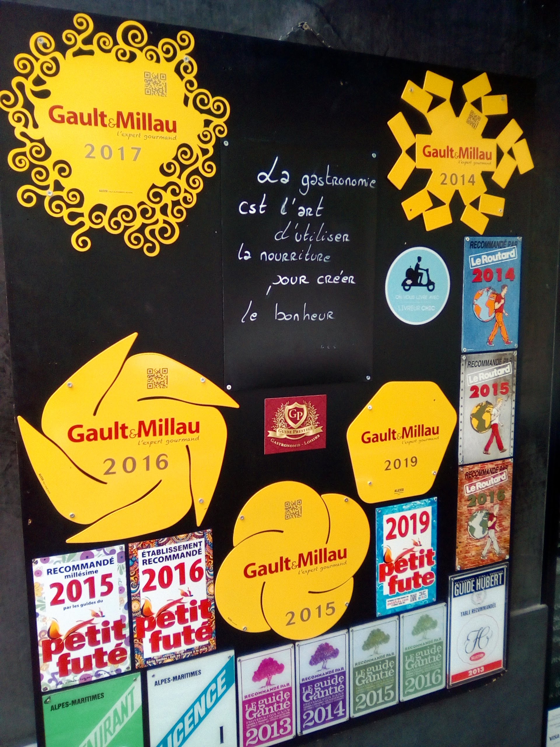 Posté le 30/01/2017 à 07:55"Cuisine à mi chemin entre nice et l'Italie, cuisine respectueuse des ingrédients ( cuisson et et assaisonnement) avec des idées très intelligentes de la parts de la chef. Bravo à la limite de l'étoile, le service discret mais à disposition du client... superbe"