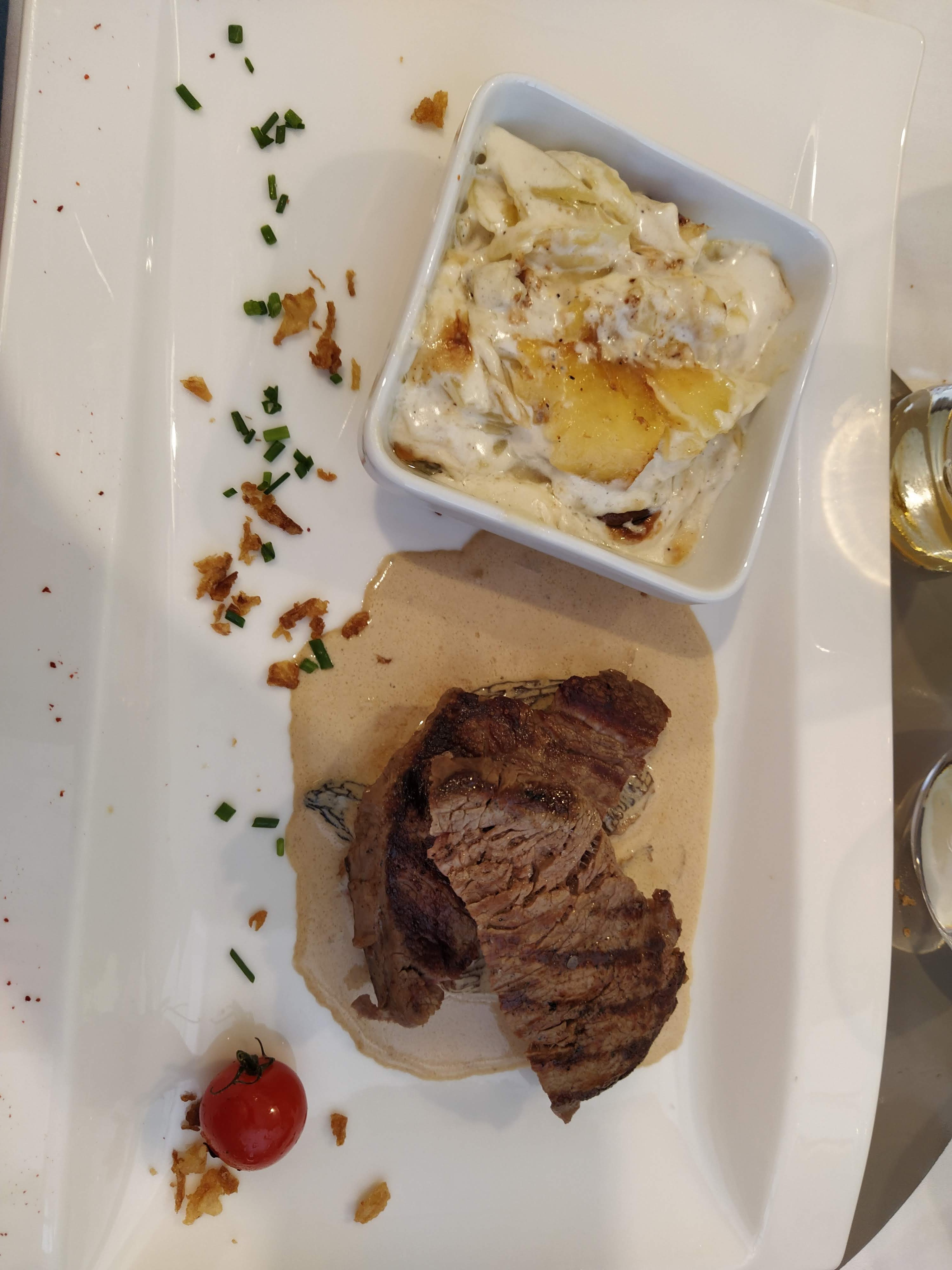 Très bel accueil. Petit bémol, il faudrait rendre la pièce un peu plus chaleureuse et on a commandé une côte de boeuf, on aurait apprécié l avoir en entière et pas en morceaux dans notre assiette. On a pas vu 1200 g de viande ( annoncé à la carte) pour 2 dans nos assiettes.... C est dommage. Mais très bon goût .