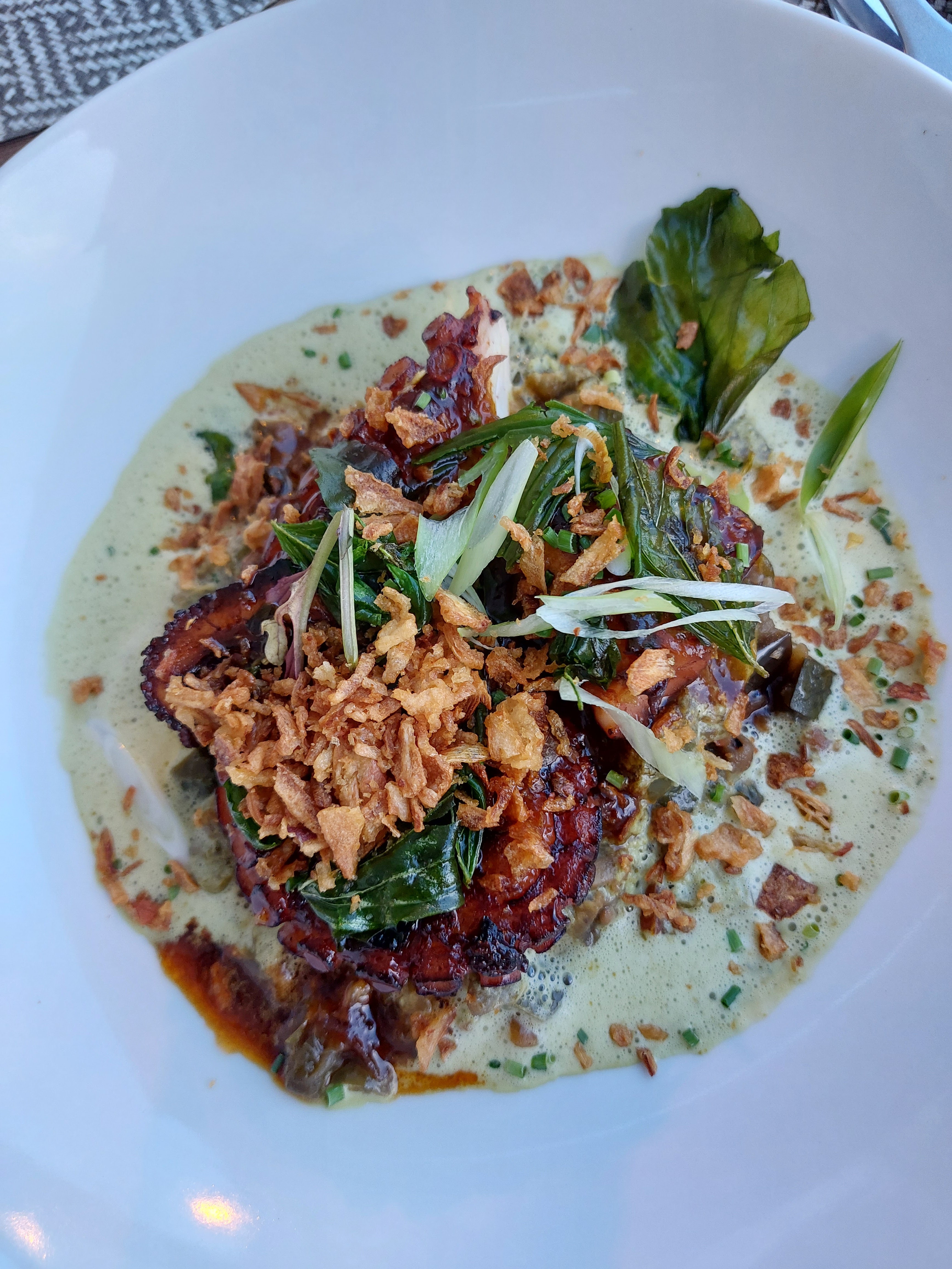 Posté le 08/05/2023 à 07:19"Entrée aucune présentation Plat de poulpe avec ses tagliatelles de courgette qui ai ont s'en doute fini en eau donc le poulpe nage dans cet eau plat insipide le prix est au-delà de la cuisine."