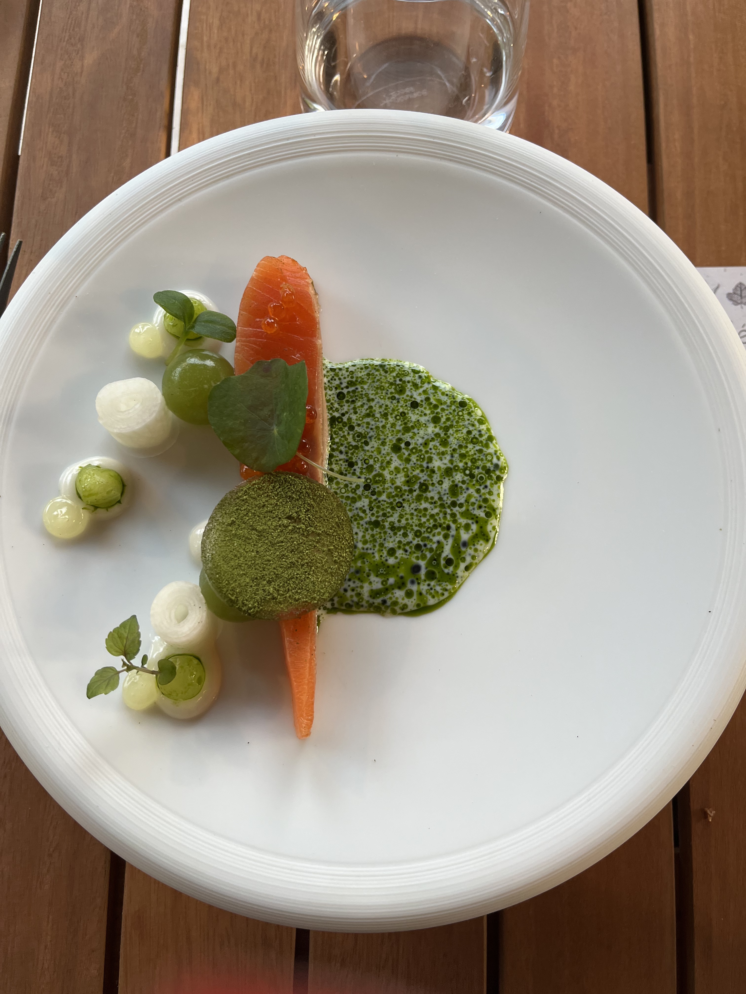Posté le 29/07/2022 à 21:57"Expérience sublime. Cuisine inventive et exquise, cadre magnifique, belle vaisselle, personnel souriant, chaise enfant et crayons de couleurs, c’est juste PARFAIT. Une étoile Michelin serait largement justifiée."