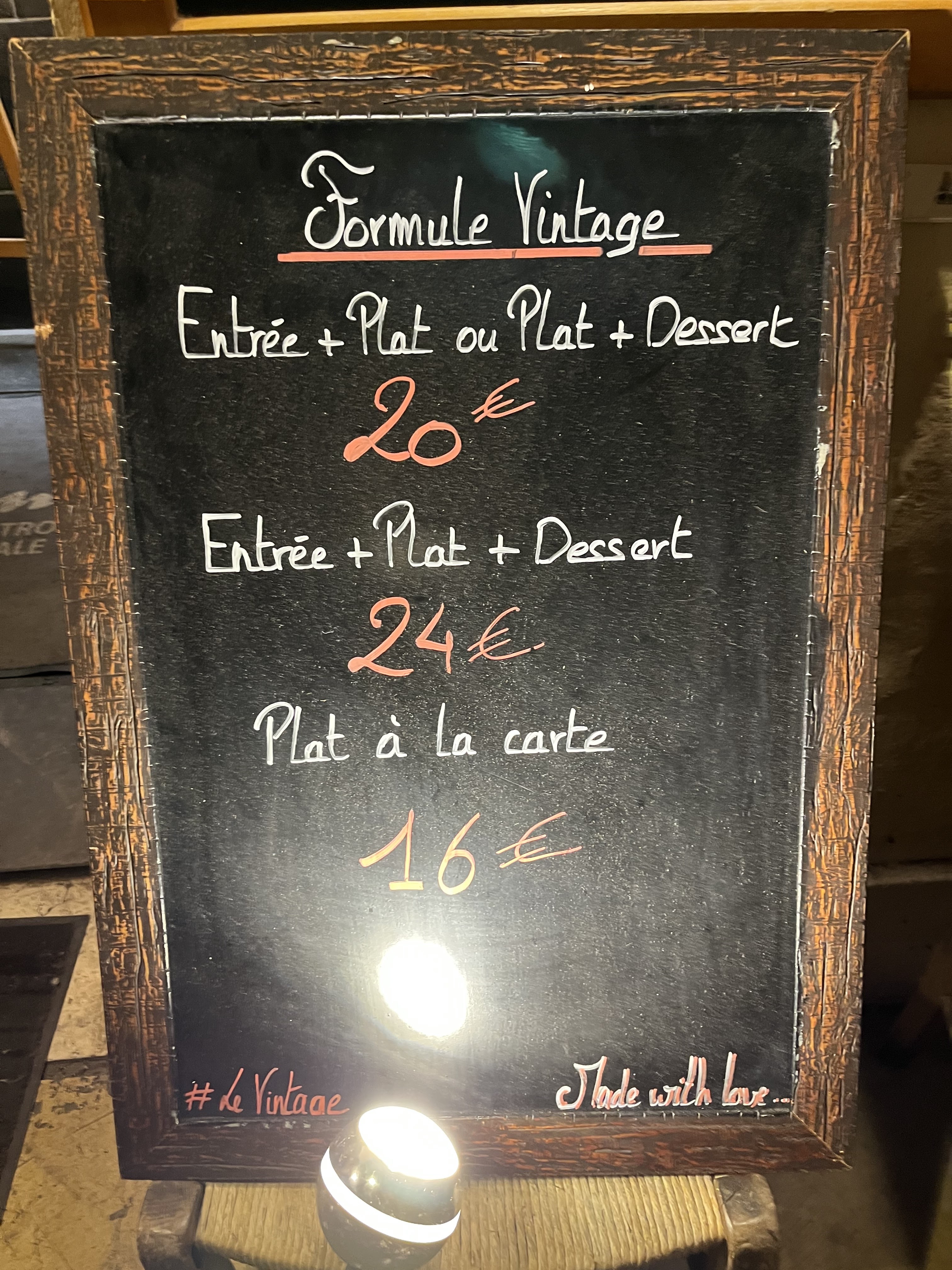 Je recommande ce lieu, atypique de part sa configuration, convivialité, et son accueil sympathique. Une équipe agréable, qui gère sa clientèle avec fluidité. Pas d'attente astreignante, pas de coupure ou d'attente durant le repas. Les plats suivent et le personnel est à l'écoute de sa clientèle. Au niveau culinaire cela reste bon enfant, la cuisine reste tout de même bien travaillée, mis en valeur, les montages sont beaux et au niveau gustatif cela reste très appréciable. Je vous conseille le filet mignon de porc, et sa tarte tatin. Le Restaurant Le Vintage est un lieu à découvrir...Bon Appétit !👌