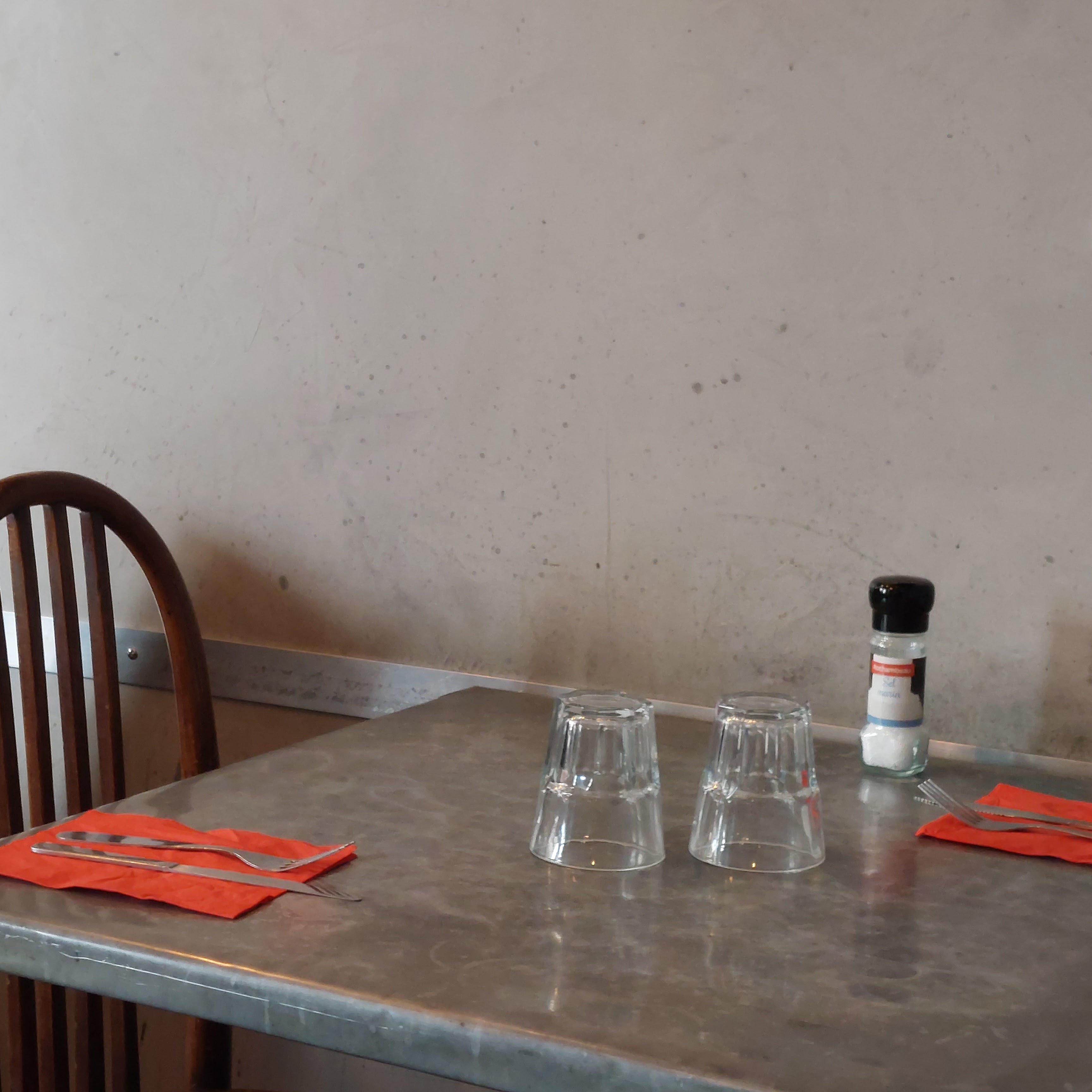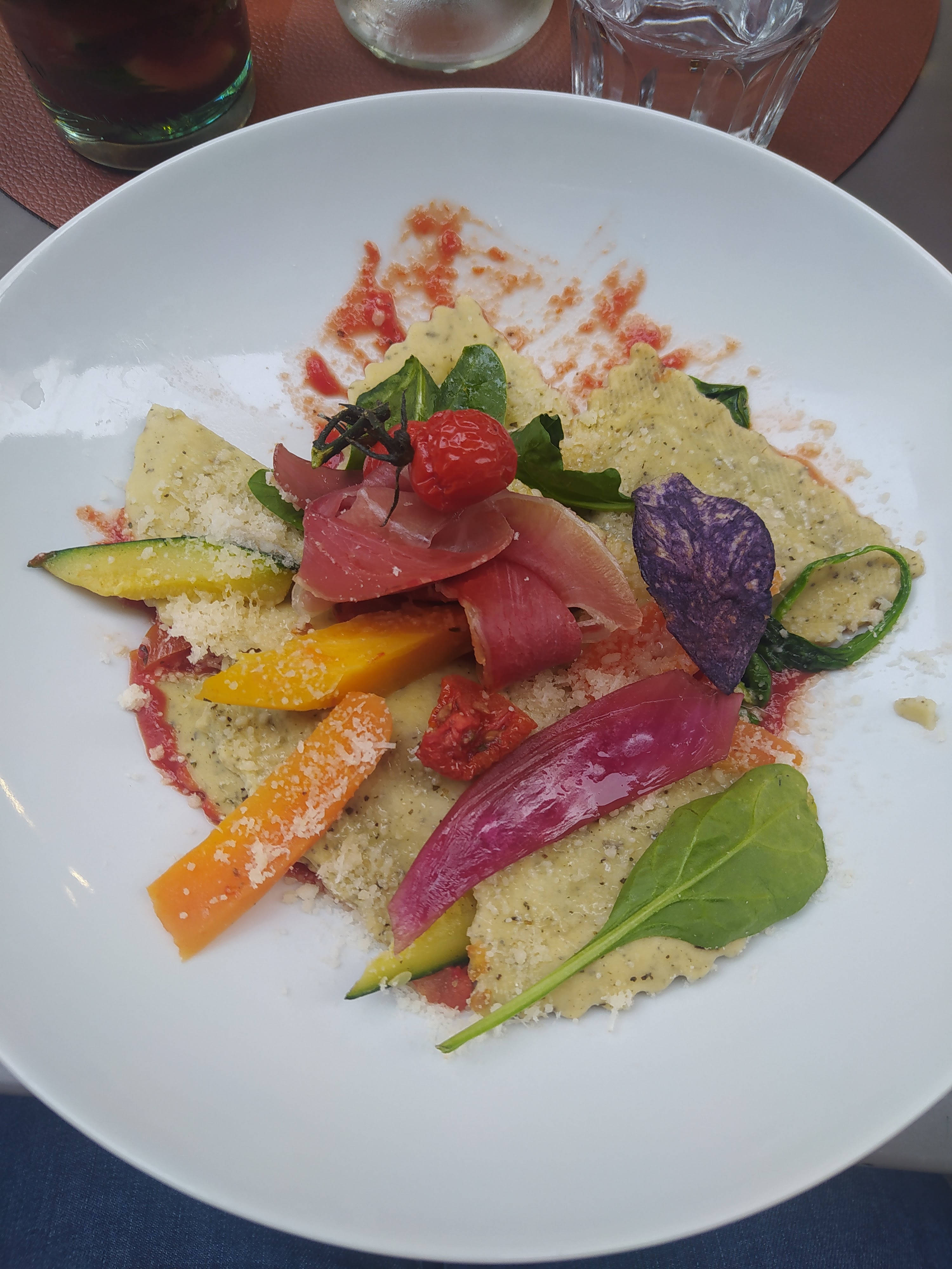 La nourriture est intéressante et créative, le prix comparé à d'autres restaurants est correct. Mais vous êtes assis dans la rue, dans un coin assez sale ; tout est un peu sale. Mais il y a beaucoup de personnel jeune et sympathique et les boissons sont bon marché ; relaxez vous et profitez. Je recommanderais la salade au Carpaccio; ou la morue.