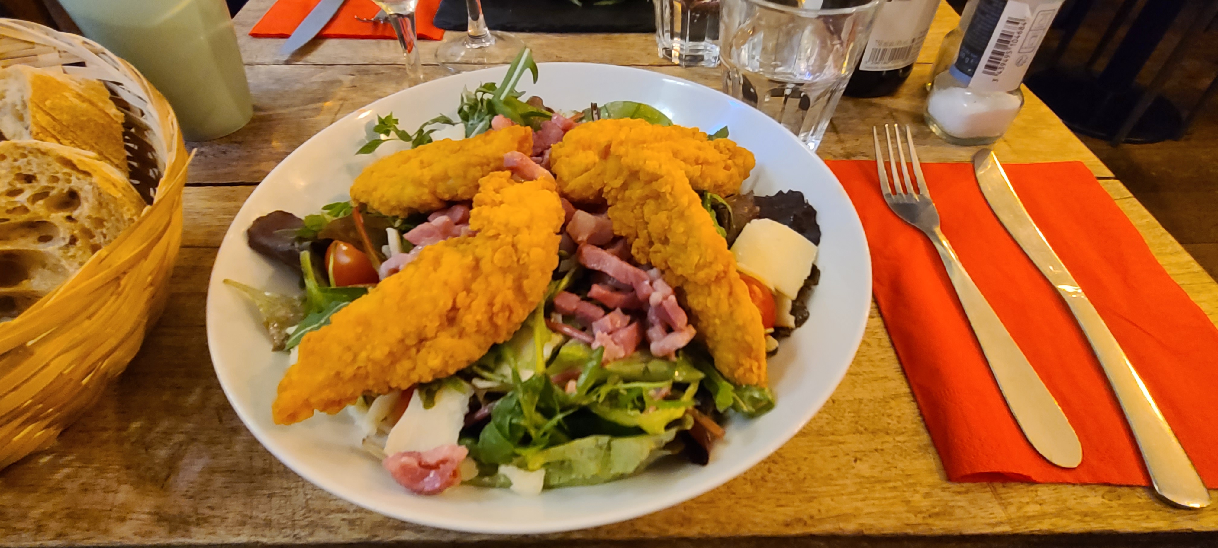 Cuisine simple peu élaborée. Peu de saveurs. Mis à part la salade, les frites et le riz, comme accompagnement rien d'autre. Dessert sympa, sans plus. Un peu déçue, après une troisième visite dans ce restaurant. Le personnel est sympa. Les lieux sont trop exigus, trop de promiscuité entre les convives, très bruyant, on ne s'entend pas parler. Même constat qu'aux précédentes visites. Ne pas choisir si on souhaite une ambiance calme et un peu feutrée.