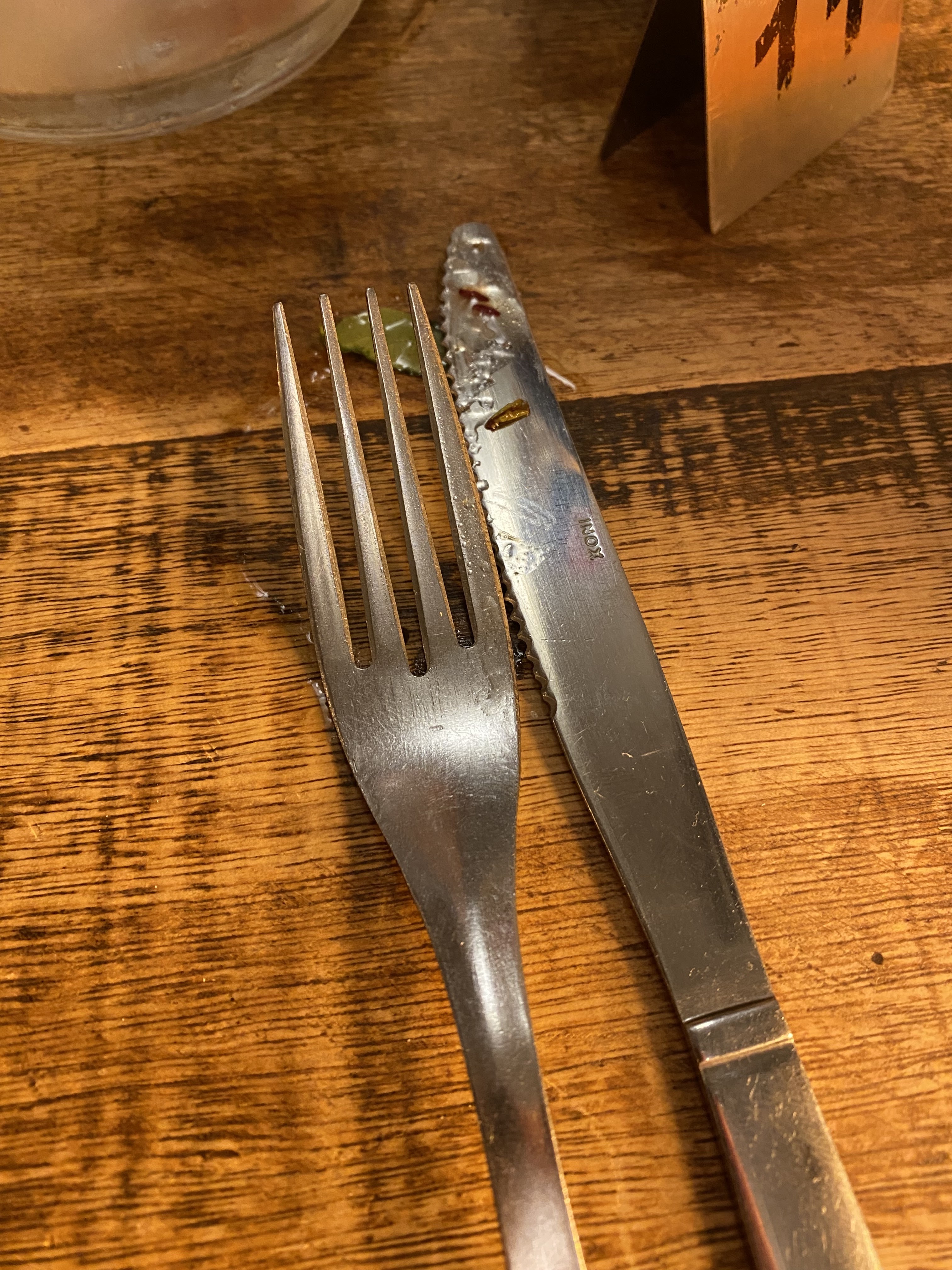 Posté le 25/01/2019 à 22:15" Je ne sais pas vraiment quel est le battage médiatique autour de cet endroit, mais j'ai décidé de tenter ma chance après avoir lu toutes les critiques élogieuses sur cet endroit. Honnêtement, je ne peux être d'accord qu'avec une seule des critiques, à propos du saumon presque congelé (je pense que c'est très évident d'après la photo que j'ai prise), probablement tout droit sorti d'une boîte, qui accompagnait le fromage de chèvre. Le canard était trop cuit, difficile à couper et avait un goût de caoutchouc. Je ne sais pas d'où la personne qui a écrit sur les saveurs complexes de la nourriture a trouvé son inspiration - peut-être que tout cela vient de son imagination. C'est vraiment plus un raté qu'un coup, à mon avis. Du côté positif, les serveurs étaient plutôt sympathiques."
