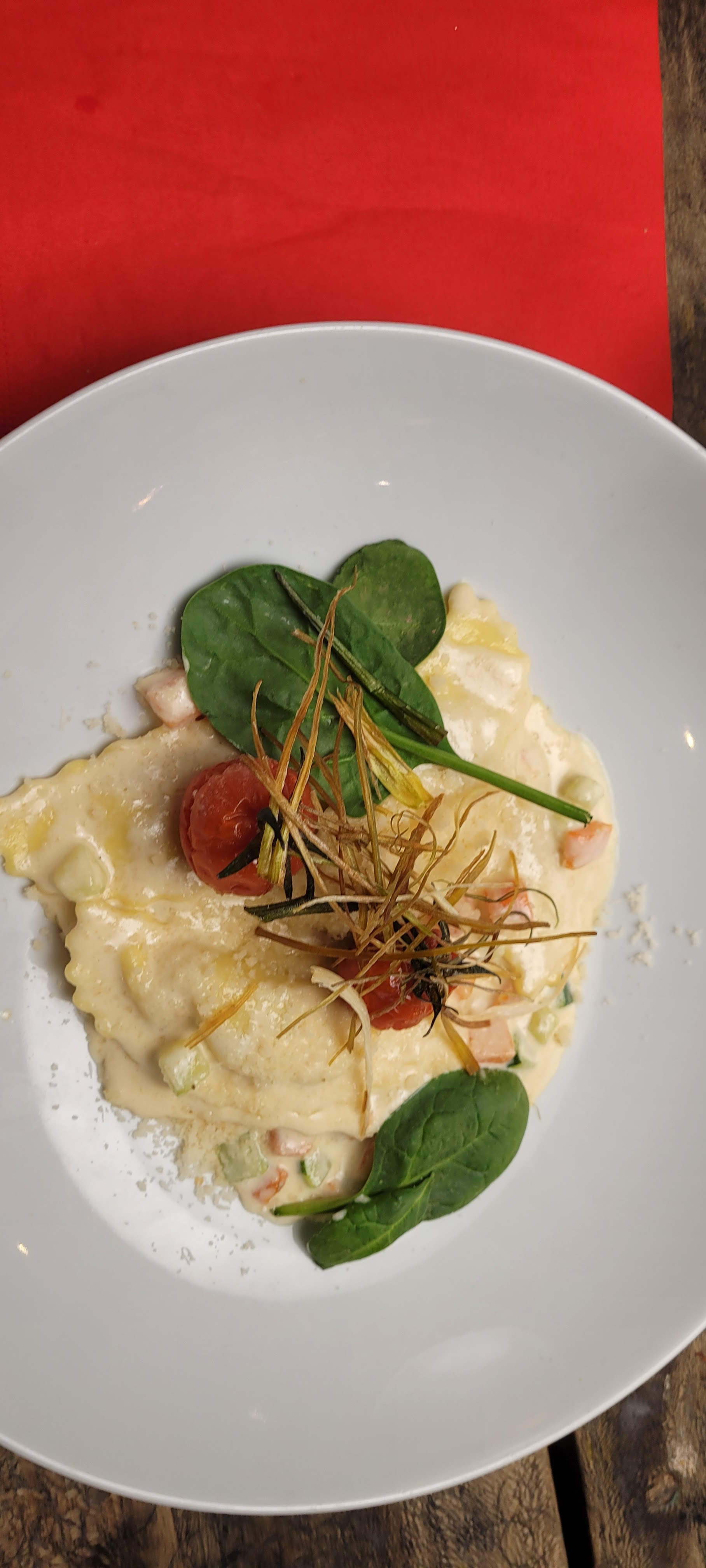 Nous y sommes allés entre copines, accueil très agréable et chaleureux, le propriétaire était présent, super sympathique, le personnel également, sans compté que nos assiettes avaient une belle présentation et c'était très bon , merci aussi en cuisine , pas du tout excessif , c'est clair que nous y retournerons