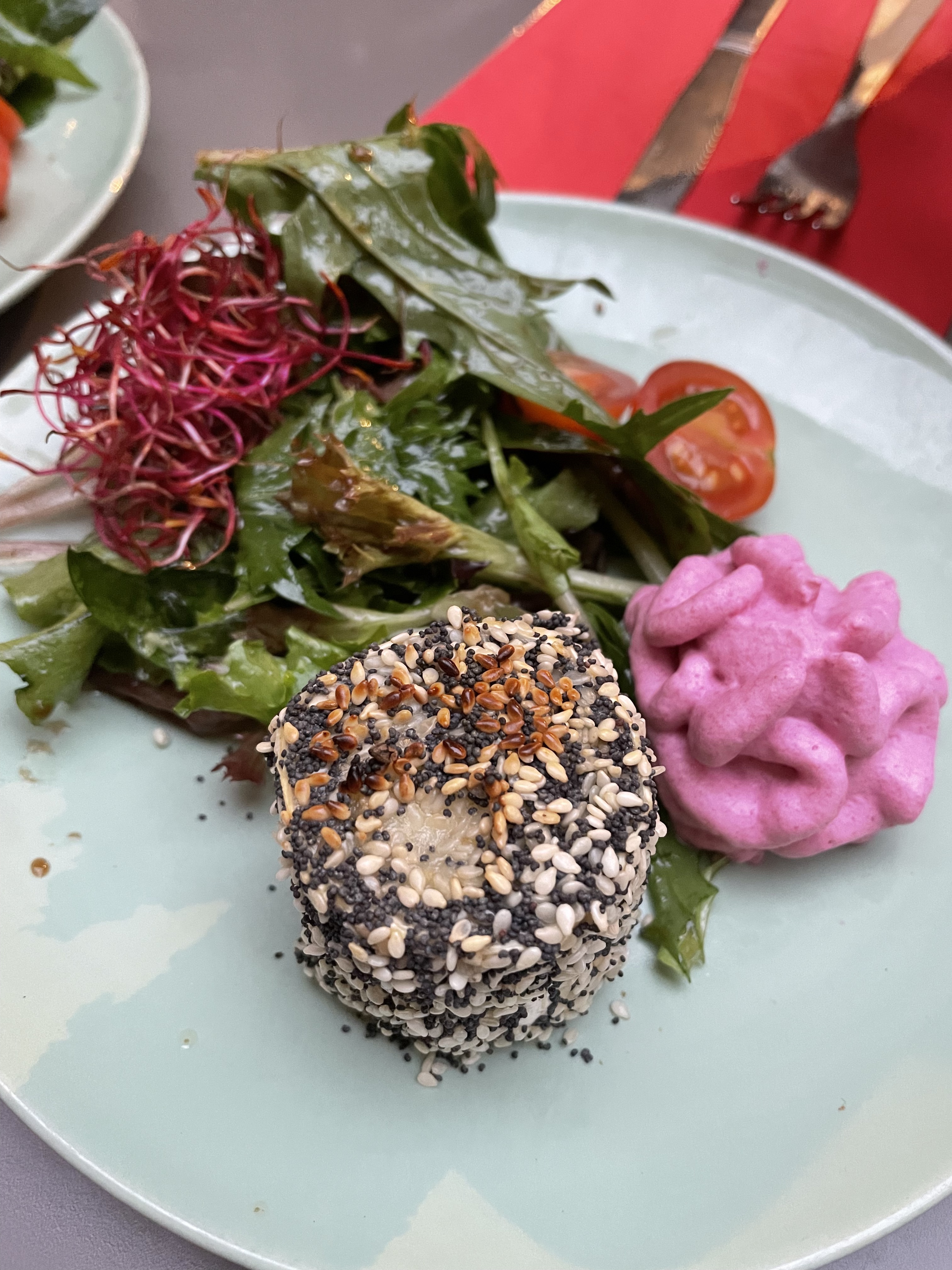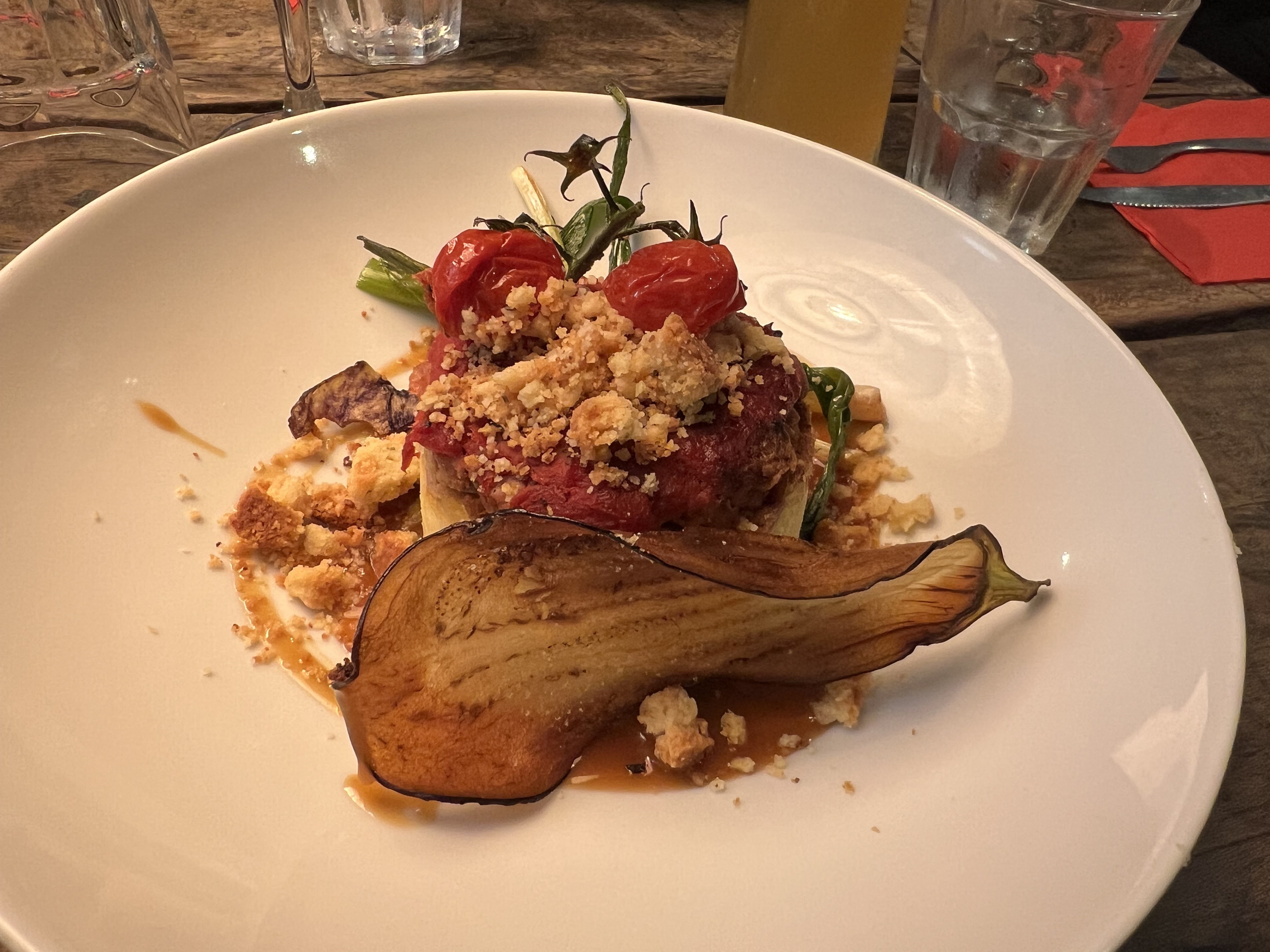 Nourriture délicieuse, personnel sympathique, bonne sélection de vins et de boissons. Le fromage de chèvre incrusté de graines de pavot et de sésame provenait très certainement d'une chèvre heureuse ! Le serveur a discuté avec nous et est même allé demander d'où venaient les gens. À quand remonte la dernière fois que cela s’est produit ? Je le recommande vraiment!