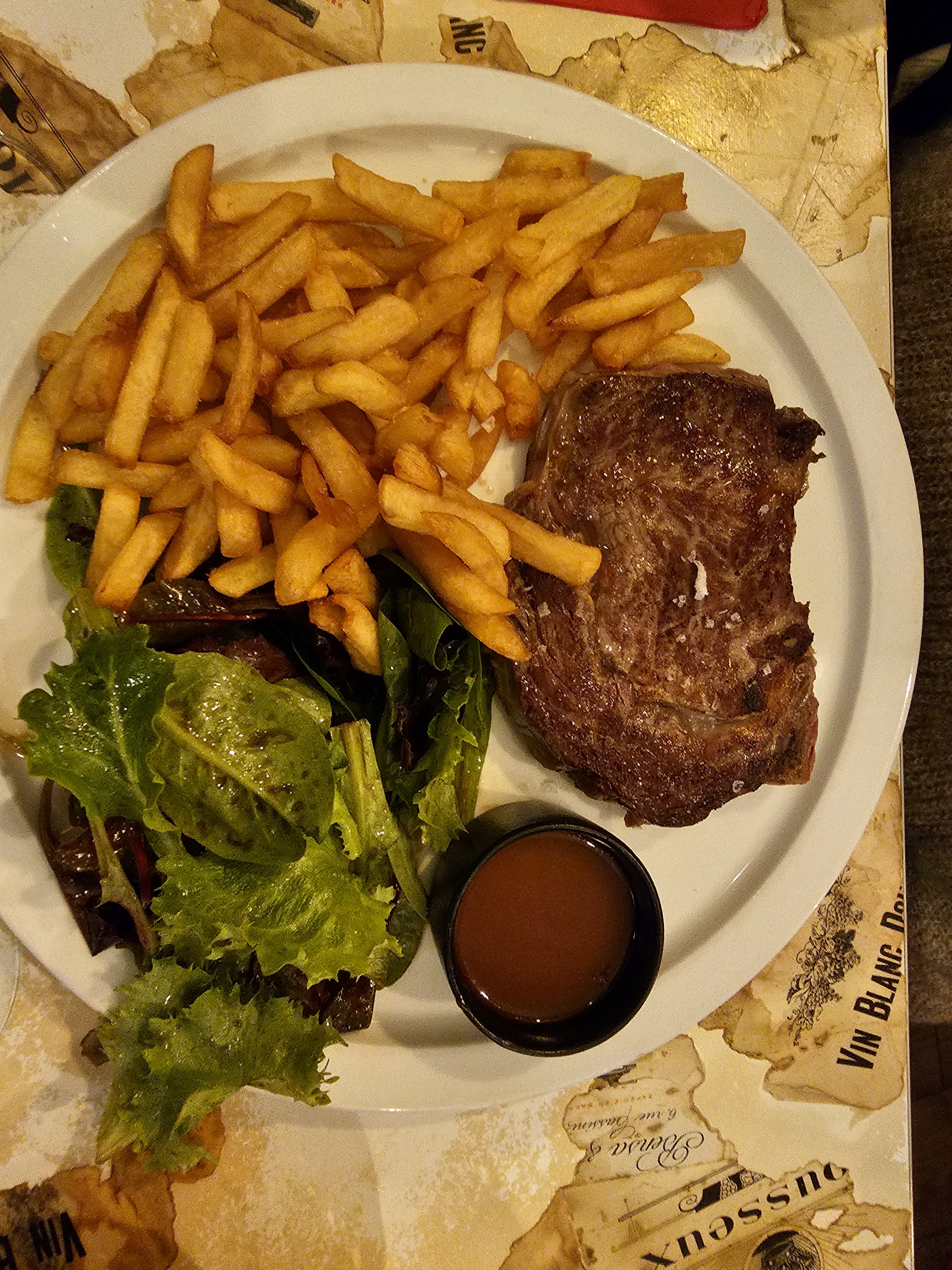 Endroit amusant et animé! Nous avons pris le poisson et le steak frites. Parfait. Trop de vin! Soirée amusante!