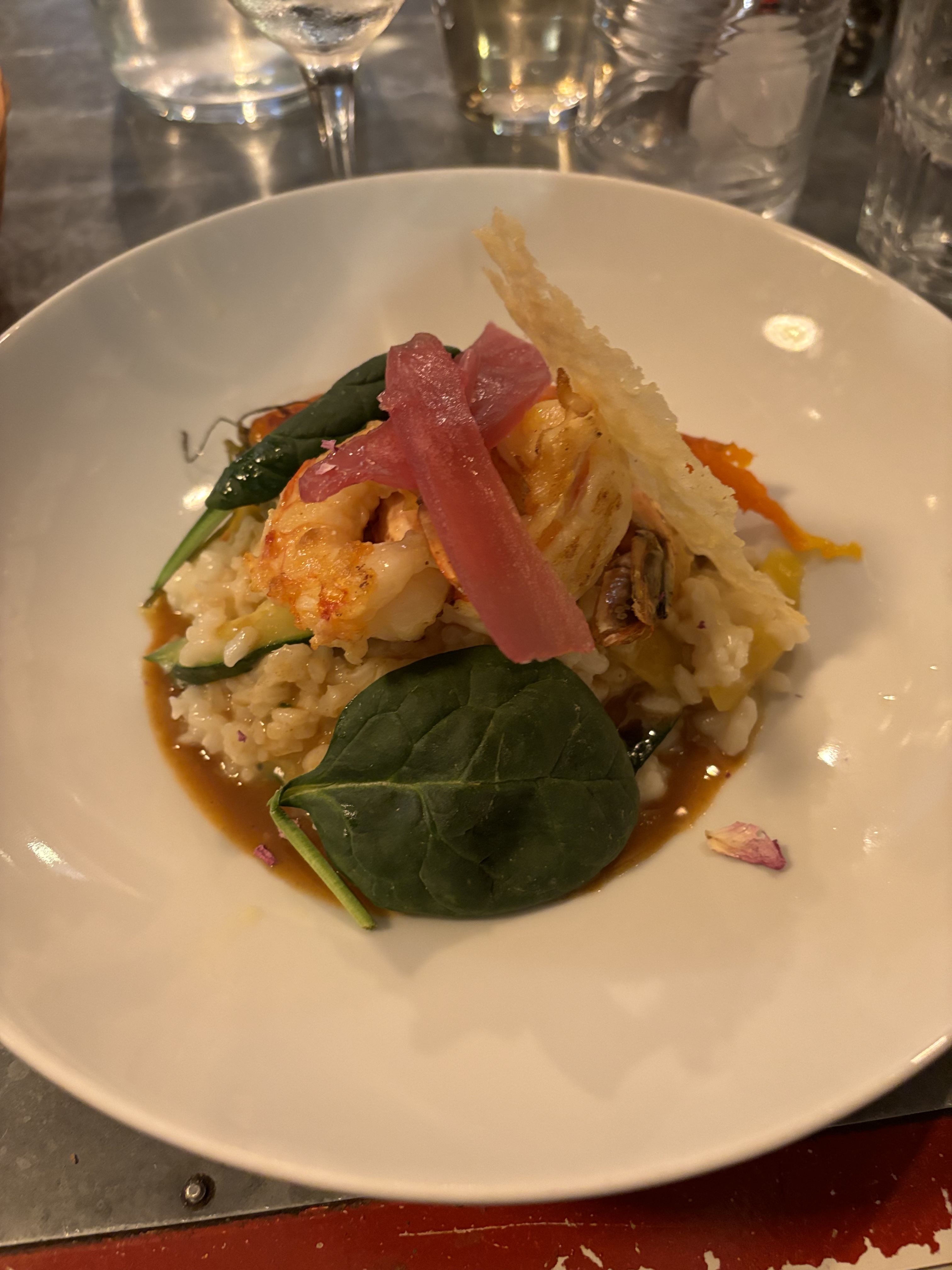 Endroit animé avec un menu couvrant une gamme d'ingrédients. Nos entrées étaient délicieuses mais les entrées n'étaient pas aussi bonnes. Le steak de surlonge était un peu dur pour quelque chose de cuit à point et le risotto au poisson mulet était fade. Le personnel est sympathique et fait de son mieux pour s'occuper de tous les convives.
