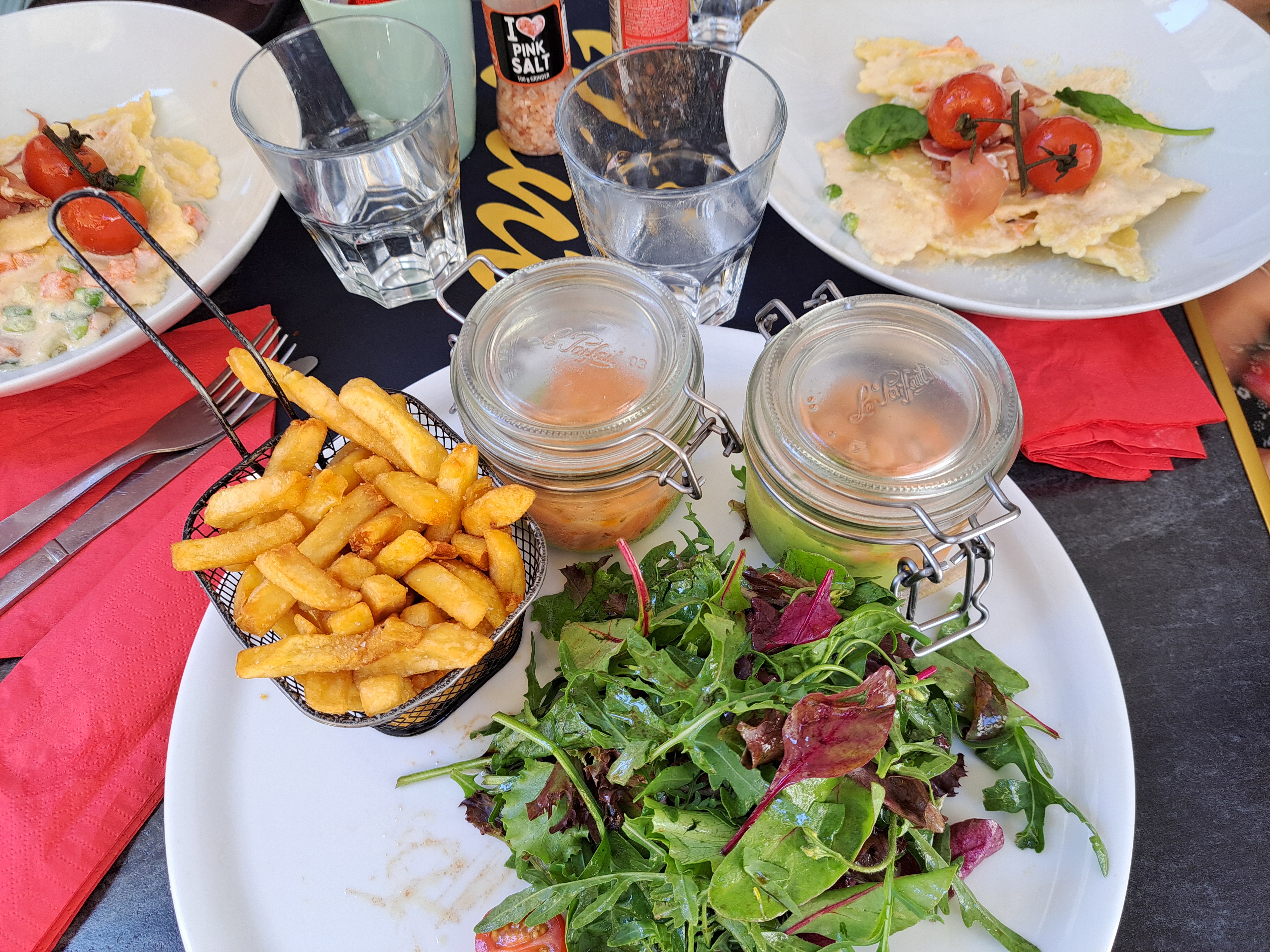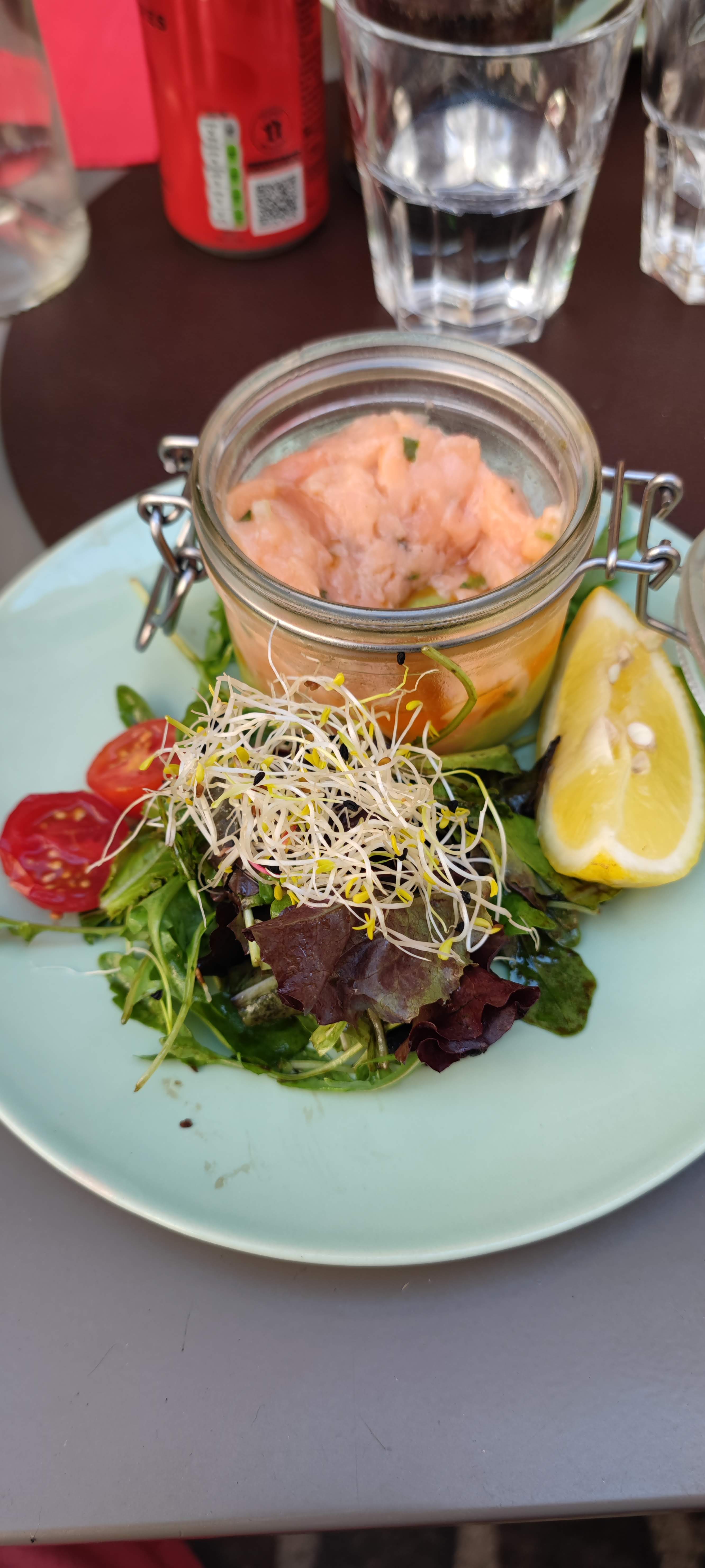 Très peu de choses à redire, nous avons toutes et.tous passés une très bonne expérience. Que des plats fait maisons, avec quelques alternatives cuisine végétarienne. (Rien de fou, mais appréciable de ce côté là) Une bonne quantité, lorsqu'on prend la formule entrée plat dessert à 22€ L'ambiance est cool, il y a la climatisation à l'intérieur. Le personnel est sympathique. Ça donne envie d'y rester. Un bon rapport qualité-prix
