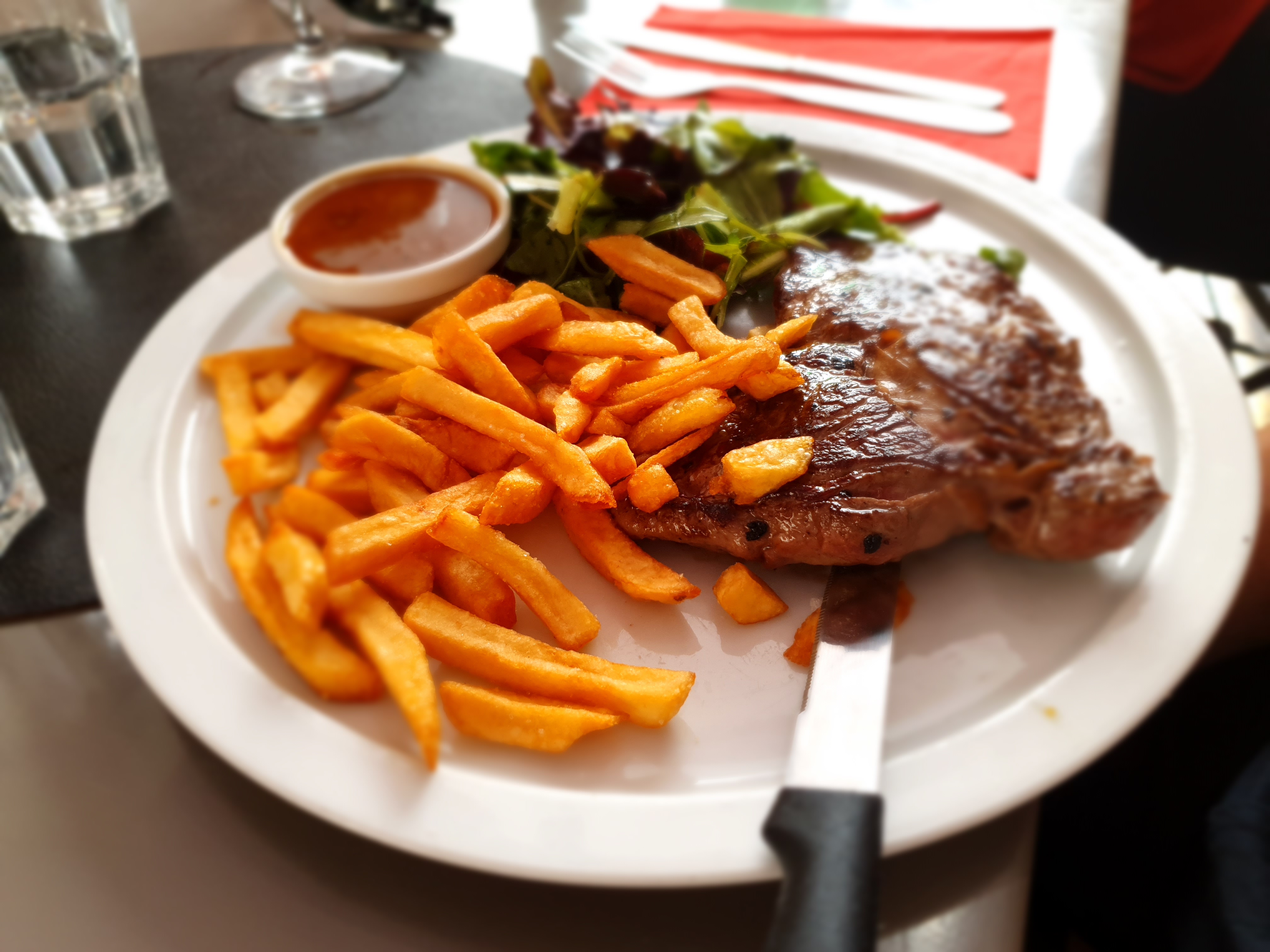 Restaurant se situant dans une rue piétonne, deux salles l une en face de l autre, bon accueil, prix assez correct, j ai prix du boeuf angus avec frites sans salade, très bonne cuisson de la viande pris un dessert cheesecake au beurre salé, une bière , service rapide et efficace
