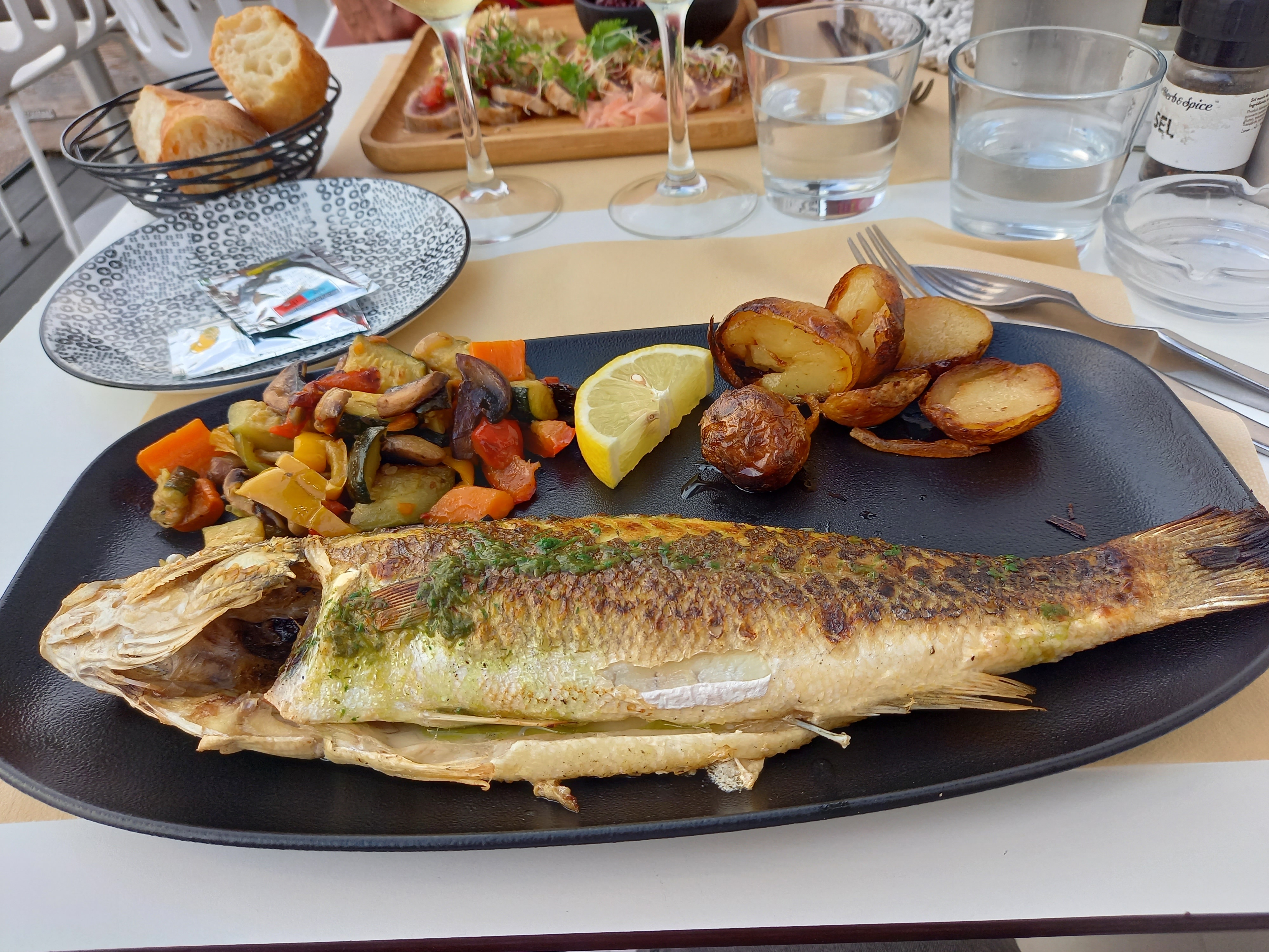 Posté le 10/09/2020 à 06:04"Bel emplacement belle déco. Service agréable. Cependant le bar était pas assez cuit et retourné en cuisine et donc resservi avec de l huile d olive pour masquer le dessèchement et avec des légumes froids du coup ... quel dommage et en plus aucun geste du restaurant. Déçue pour le prix demandé."