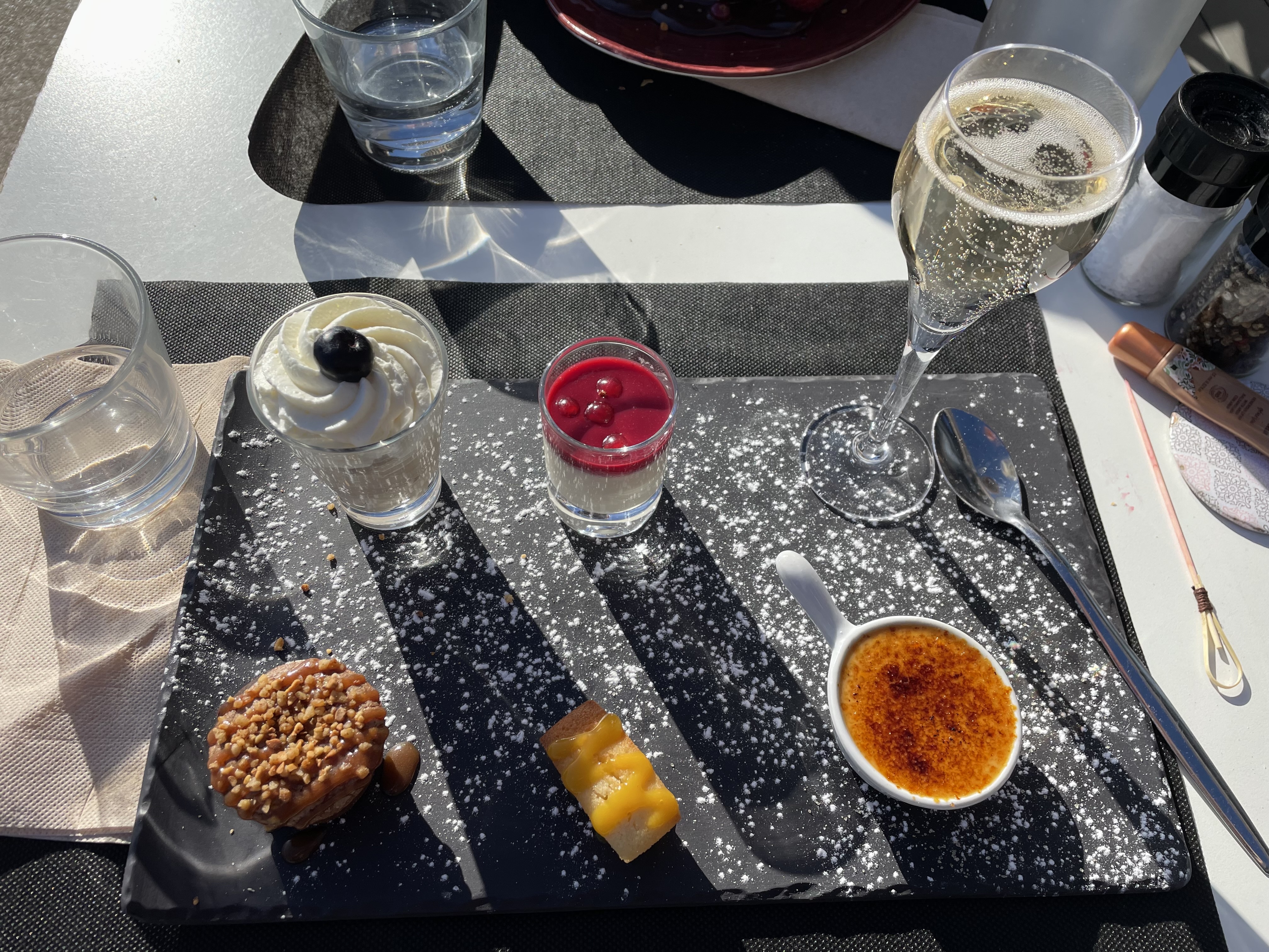 Posté le 19/02/2023 à 17:28"Ce restaurant est quand même cher pour se trouver sur une terrasse fermée et esquiché entre le mur de plastique et les voisins, avec une vue imprenable sur le parking. D'autres voisins fumaient, face au panneau d'interdiction. Les plats étaient correct mais le dessert avec de la crème anglaise à la truffe une très mauvaise idée. Nous l'avons dit au serveur qui n'a pas proposé un autre dessert ! Bref, il a 3,8 étoiles aujourd'hui mais ne vaut pas mieux."