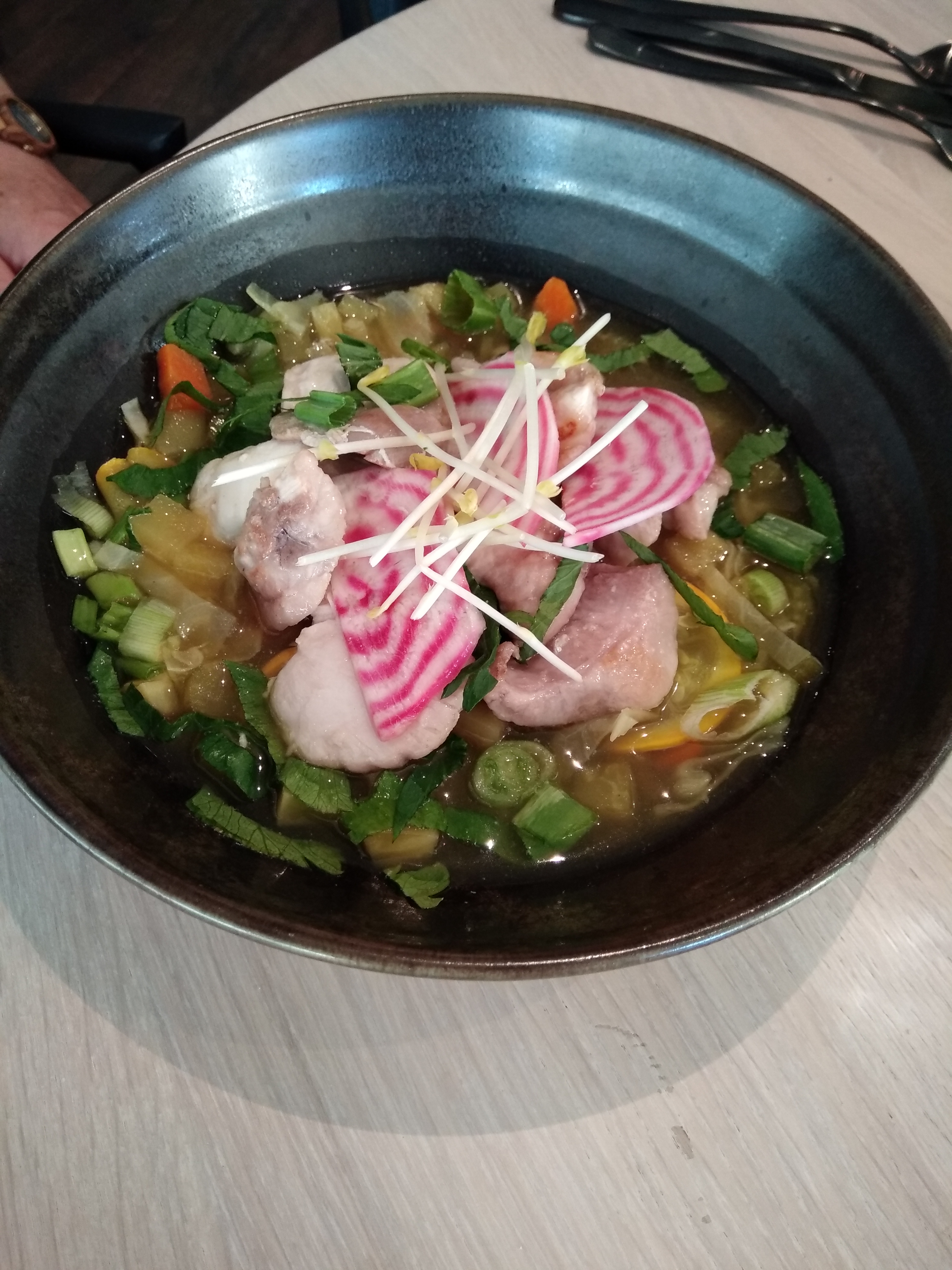 Cuisine locale et raisonnée. J'aime le concept mais au-delà de ça la cheffe a réussi à me faire manger des légumes que d'habitude je n'aime pas....c'est pour dire que c'est tellement bien cuisiner que celà vous réconcilie avec certains aliments . Personnel aimable ,très accueillant,à l'écoute et de bons conseils. Merci pour ces découvertes culinaires, on a déjà réservés notre table pour une prochaine fois.