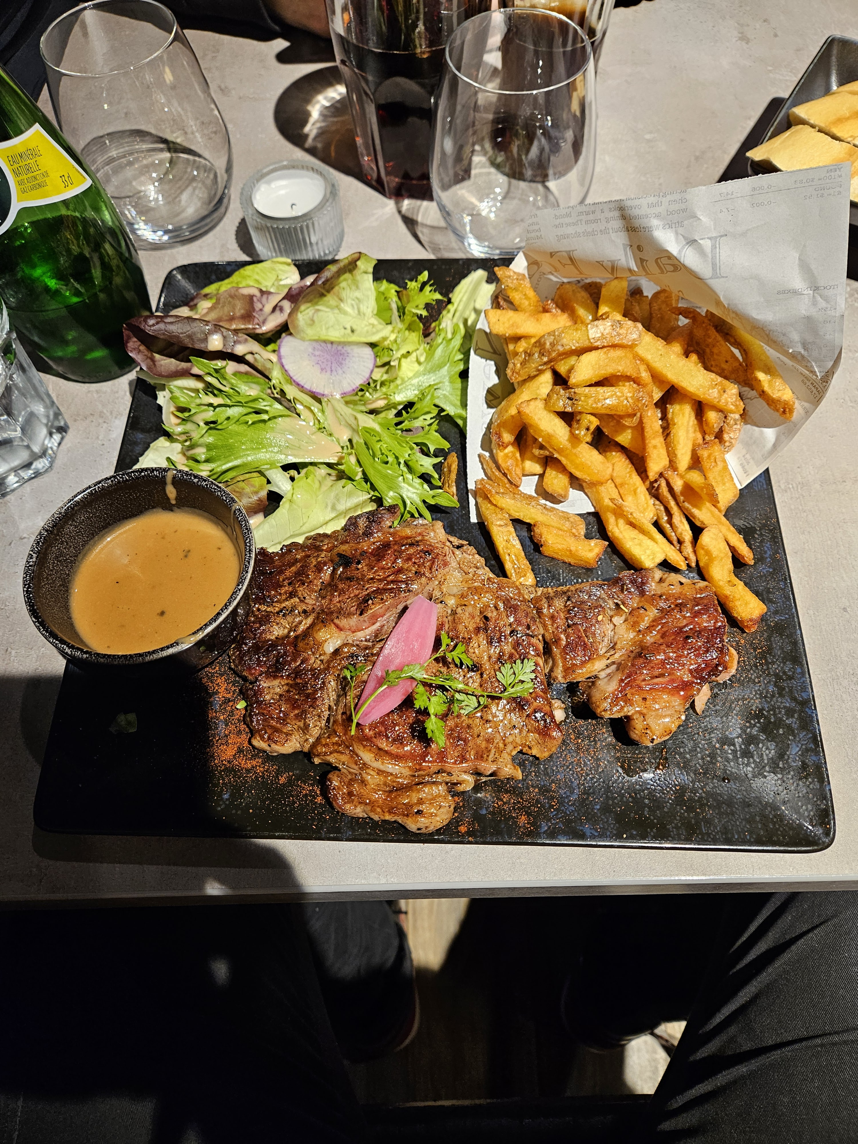 Très bon restaurant j'ai pris l'entrecôte avec la sauce st Marcellin rien a redire, pas mal de gras quand même mais c'est un peu normal pour ce type de pièce Les frites sont excellentes et le dessert Tarte citron déstructuré excellente De plus la responsable de salle a été très très gentille souriante et répond à toutes les questions avec le sourire