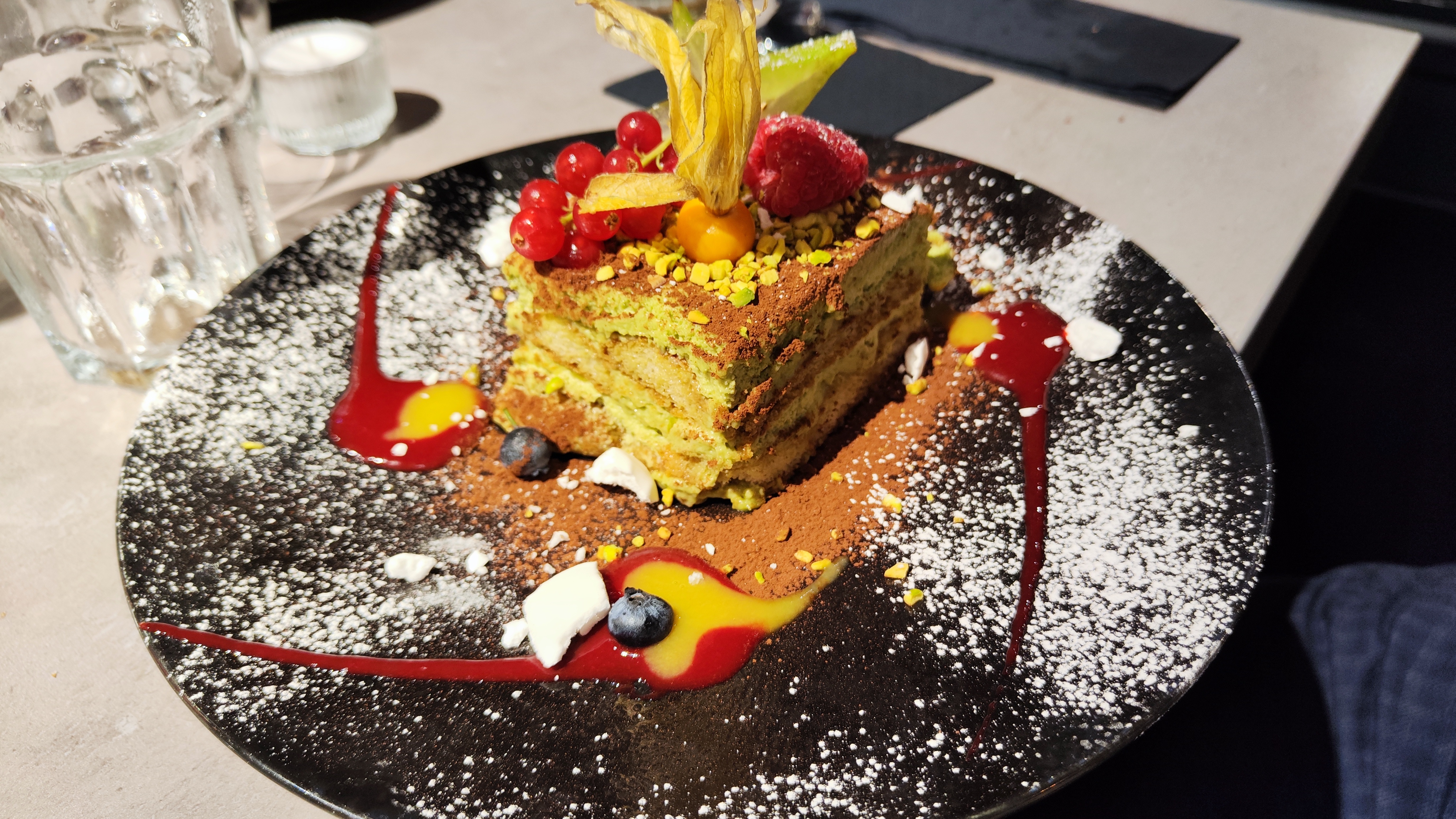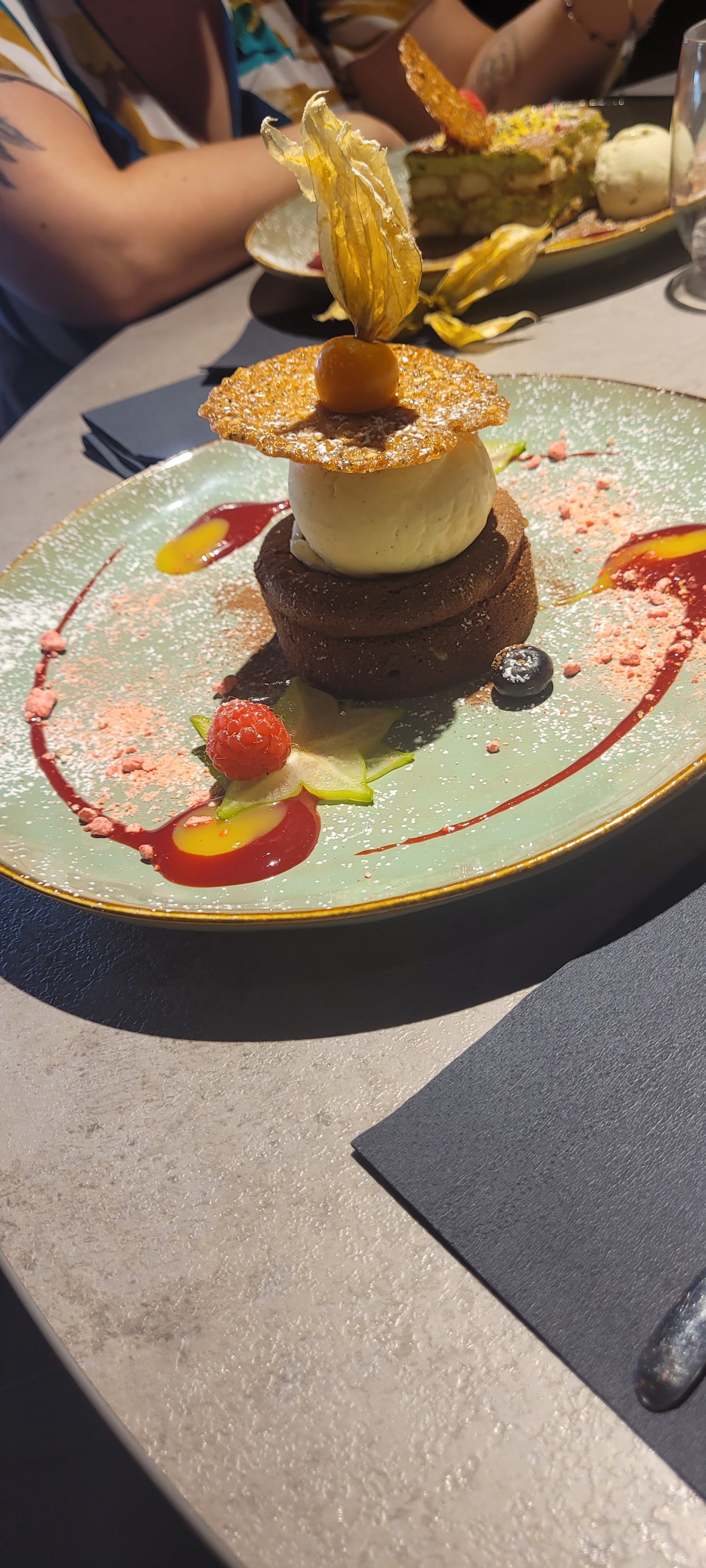 Équipe très sympathique, belle déco, sympa les miroirs🪞. Les plats et desserts sont un d é l i c e et joliment présentés ✅👌🏻✨😊 beaucoup de saveurs, on a envie de tout goûter! Le tiramisu pistache ma passion 😄