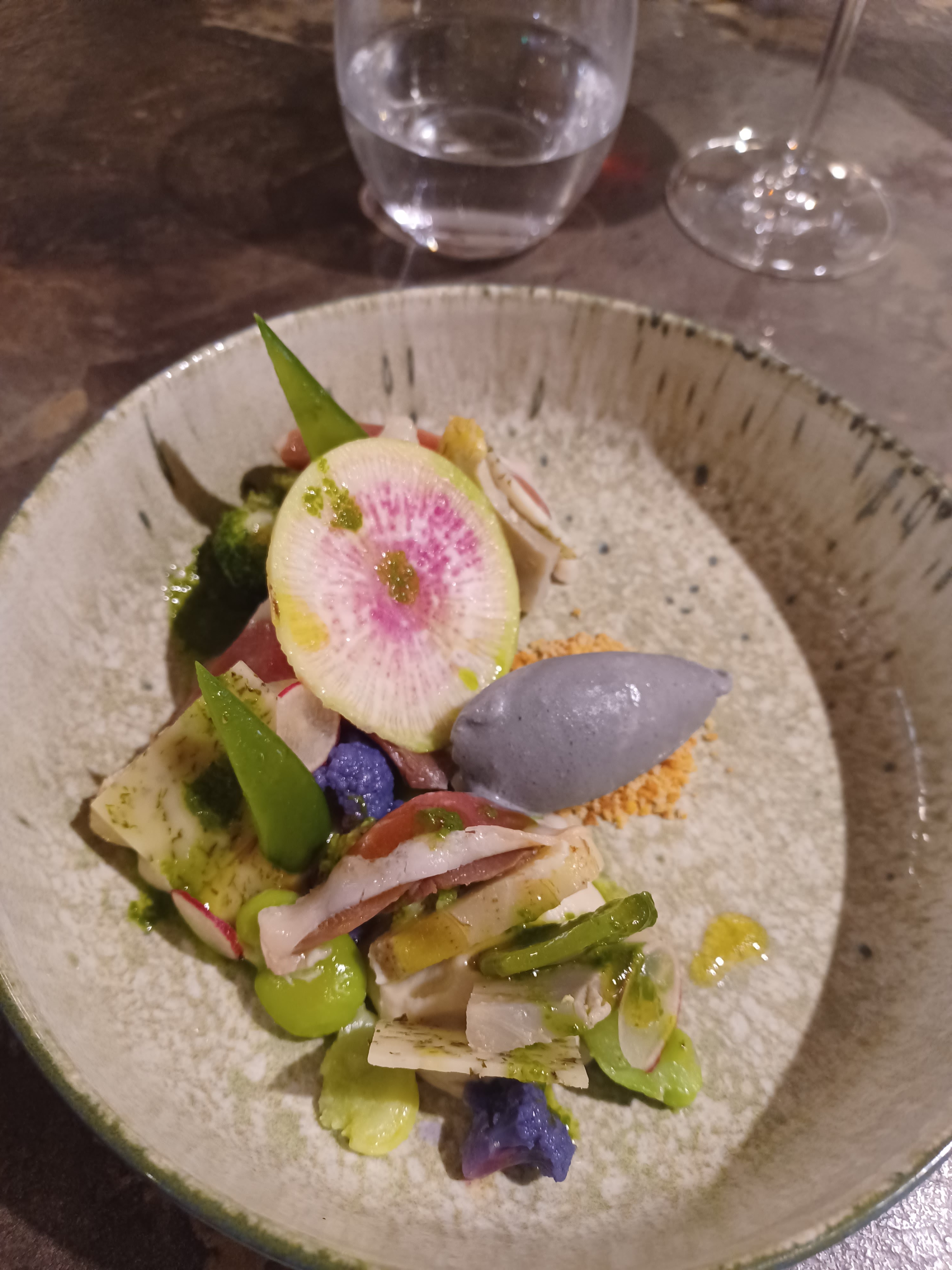 Posté le 17/10/2023 à 14:38"Nous faisons toujours confiance au Bib gourmand du Michelin, mais la j’ai un vrai doute! Trop d’aliments différents dans une meme assiette, c’est une vraie cacophonie! Le pire, c’est que les memes aliments se trouvent dans l’autre met! L’un aux miettes de crabes non existantes et l’autre aux artichauts non existants. Nous sommes sorties de là et je ne sais toujours pas ce que j’ai mangé. Aucune harmonie. C’est dommage, car tous les elements sont extras, de qualité et de gout! on pourrait facilement en faire 5 plats differents .. Jolie salle mais trop bruyante. Tres bon service. Trop cher."