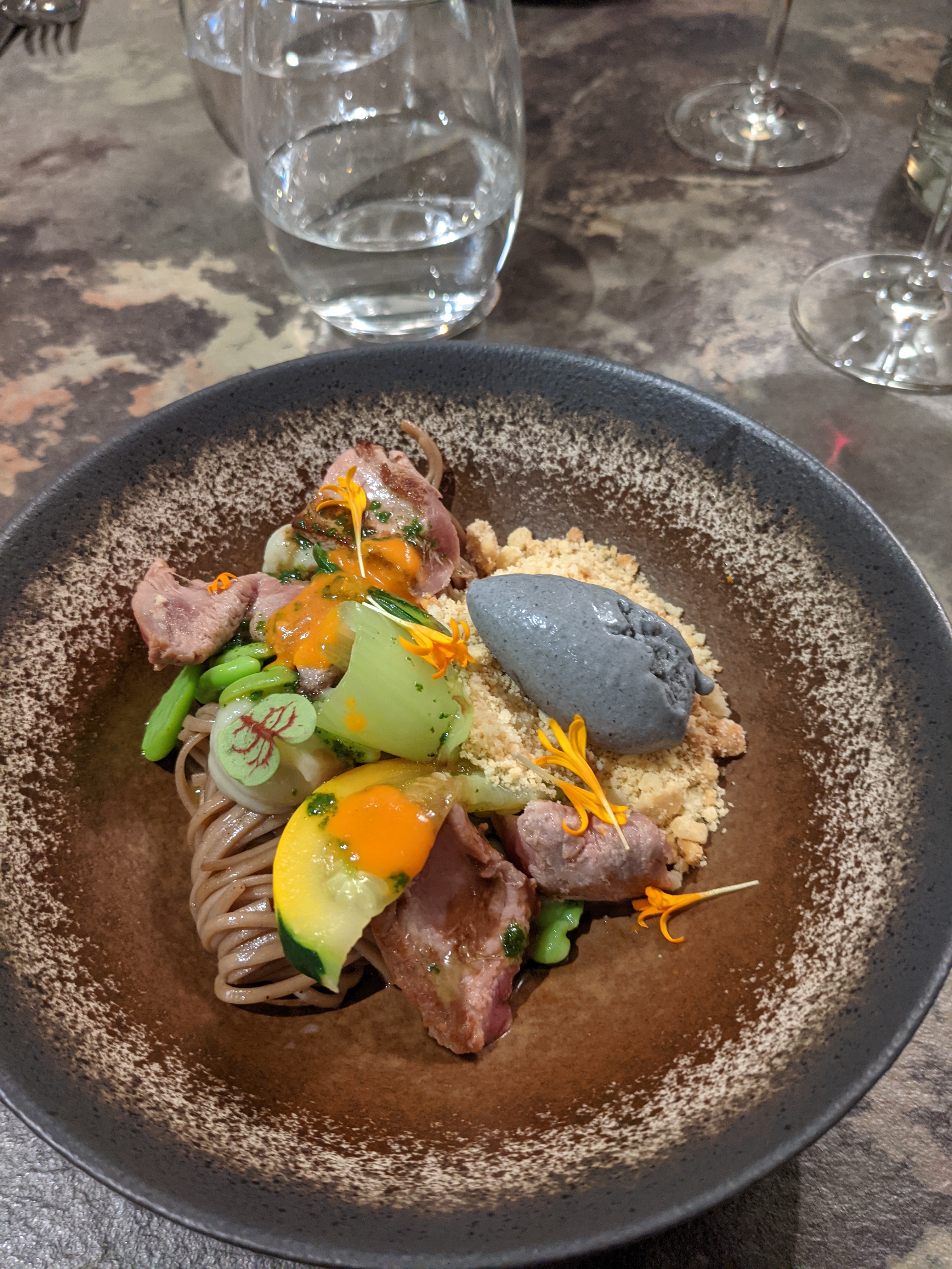 Une cuisine absolument incroyable, des saveurs subtiles, une belle présentation, je ne changerais rien à cette expérience culinaire! Le personnel était également très sympathique, et l'endroit est magnifique. Honnêtement, j'ai hâte d'y retourner :)