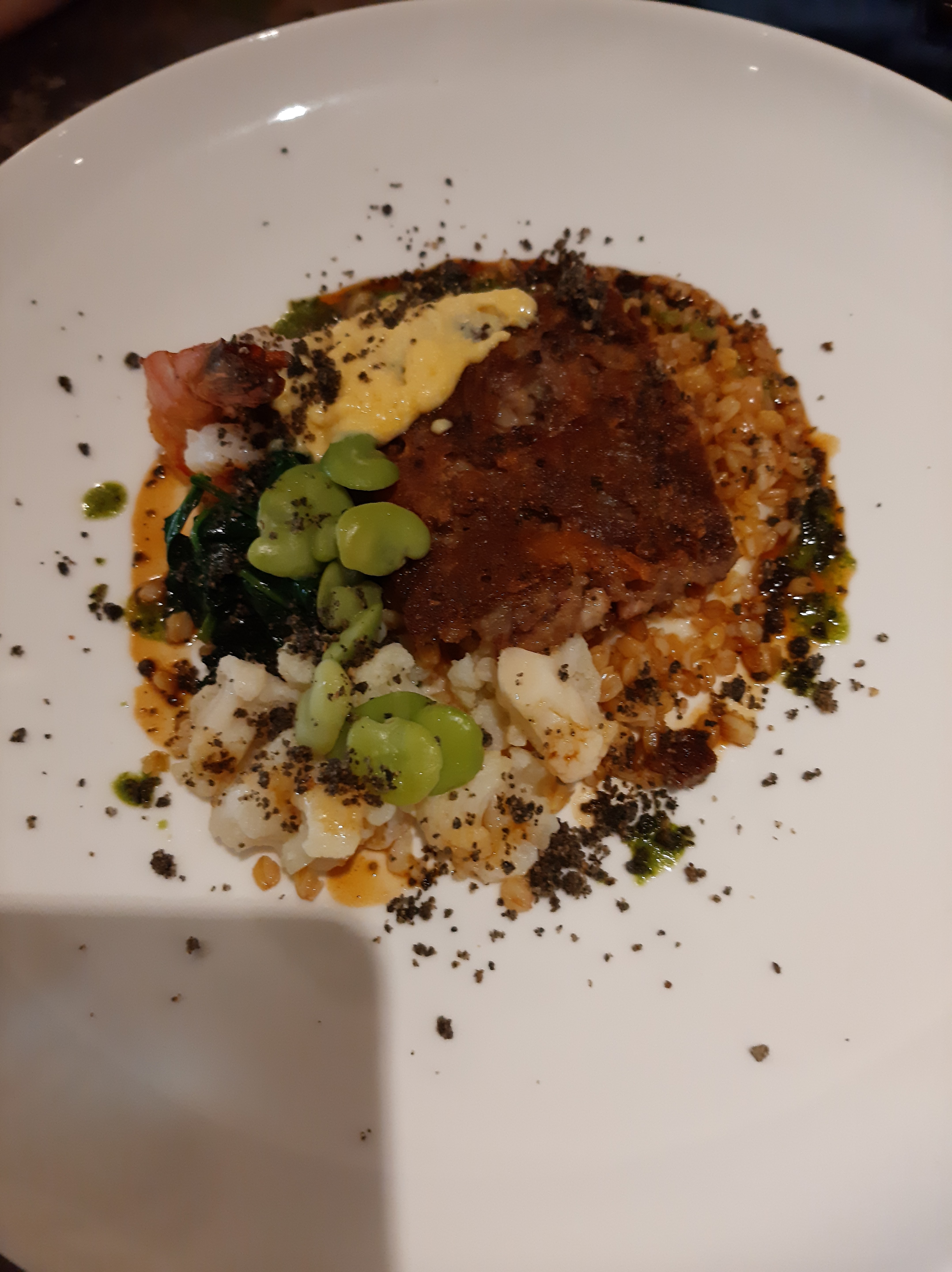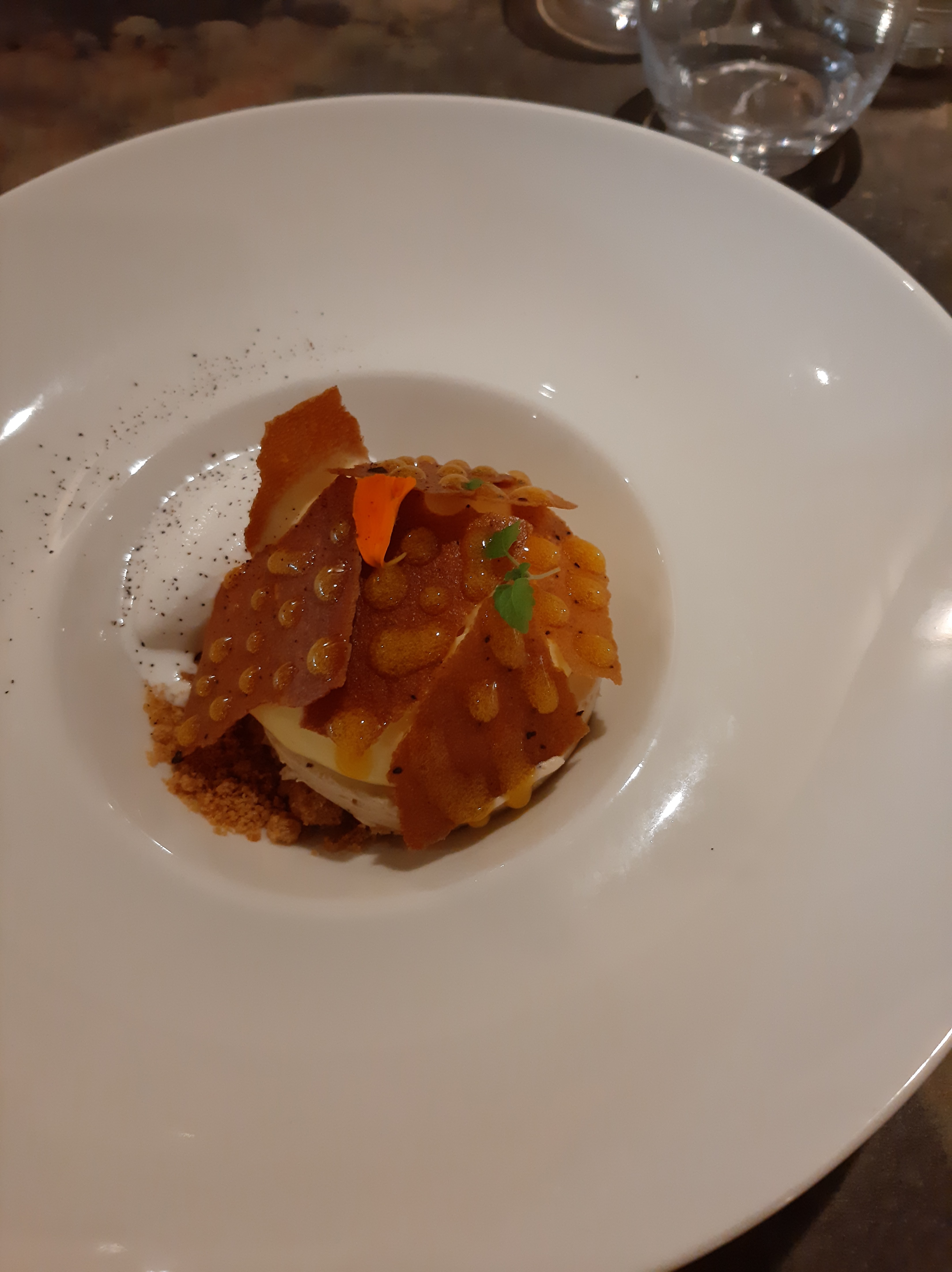 Très bon repas. Entrée très bonne. Plat aussi même si j'aurais aimé un peu plus de saveurs marquées... Dessert original. Personnel très sympathique et souriant.