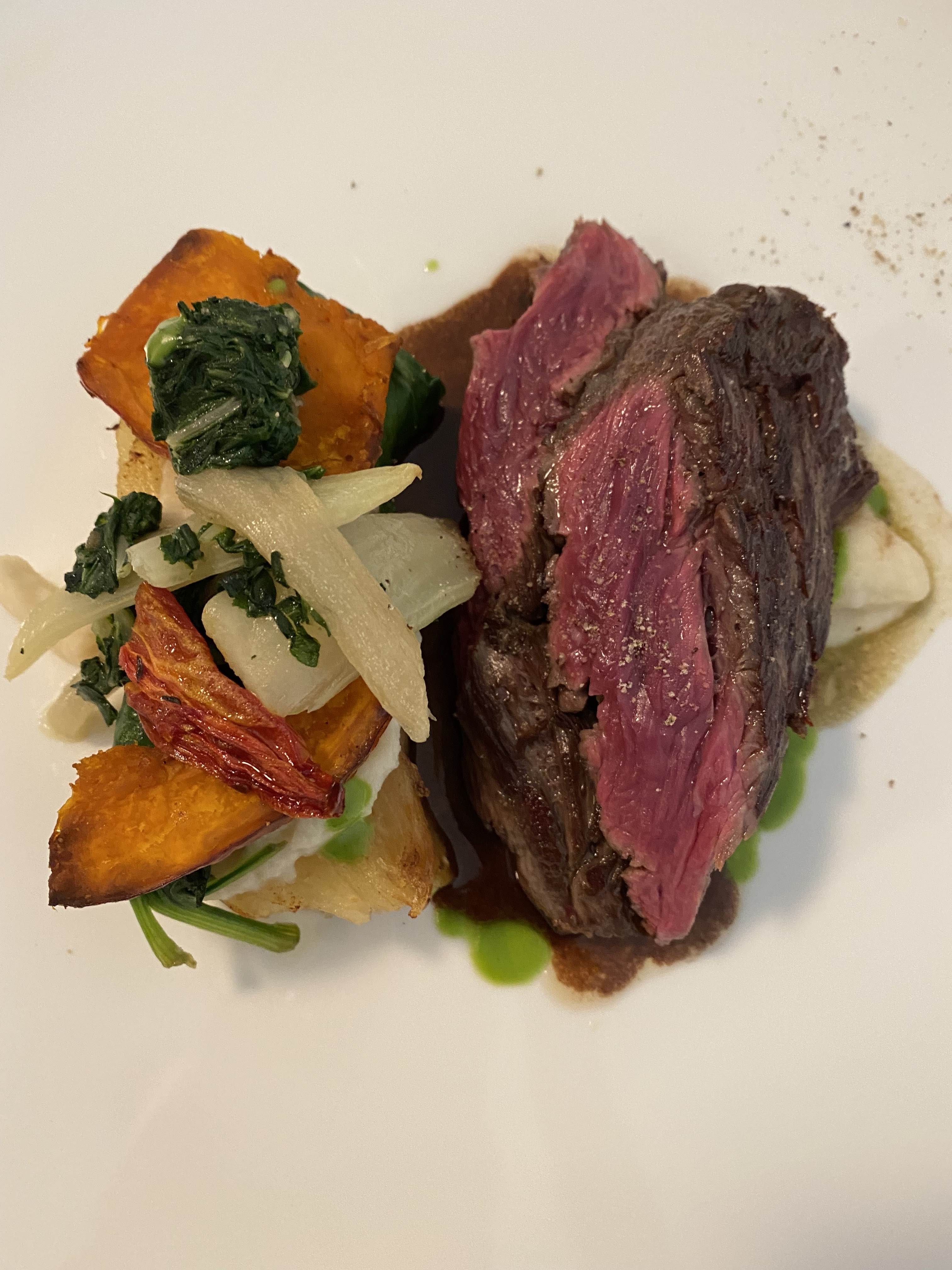 Les assiettes sont magnifiques bien dressées avec de belles couleurs. Par contre si vous êtes mangeur normal c'est très juste au niveau des quantités. Et puis à force de mélanger les produits on ne reconnait plus aucune saveur. Sinon très beau cadre personnel très sympa et professionnel. Si vous aimez cette nouvelle cuisine avec une immense assiette et 1 mini carotte au milieu et des petits bouts d'ingrédients que vous n'idenrifierez pas allez y vous serez comblés!