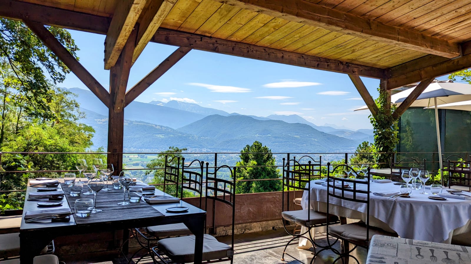 Un de mes restaurants préférés pour le cadre et la vue époustouflante sur les massifs, le confort général et en particulier l'ambiance sonore qui est très agréable (jamais de brouhaha !). Et, une cuisine inventive, très accessible. Une carte des vins commentée par le Patron lui-même. Un must à 5 minutes du Centre, et on est déjà (presque à la montagne). Bravo à toute l'Equipe.