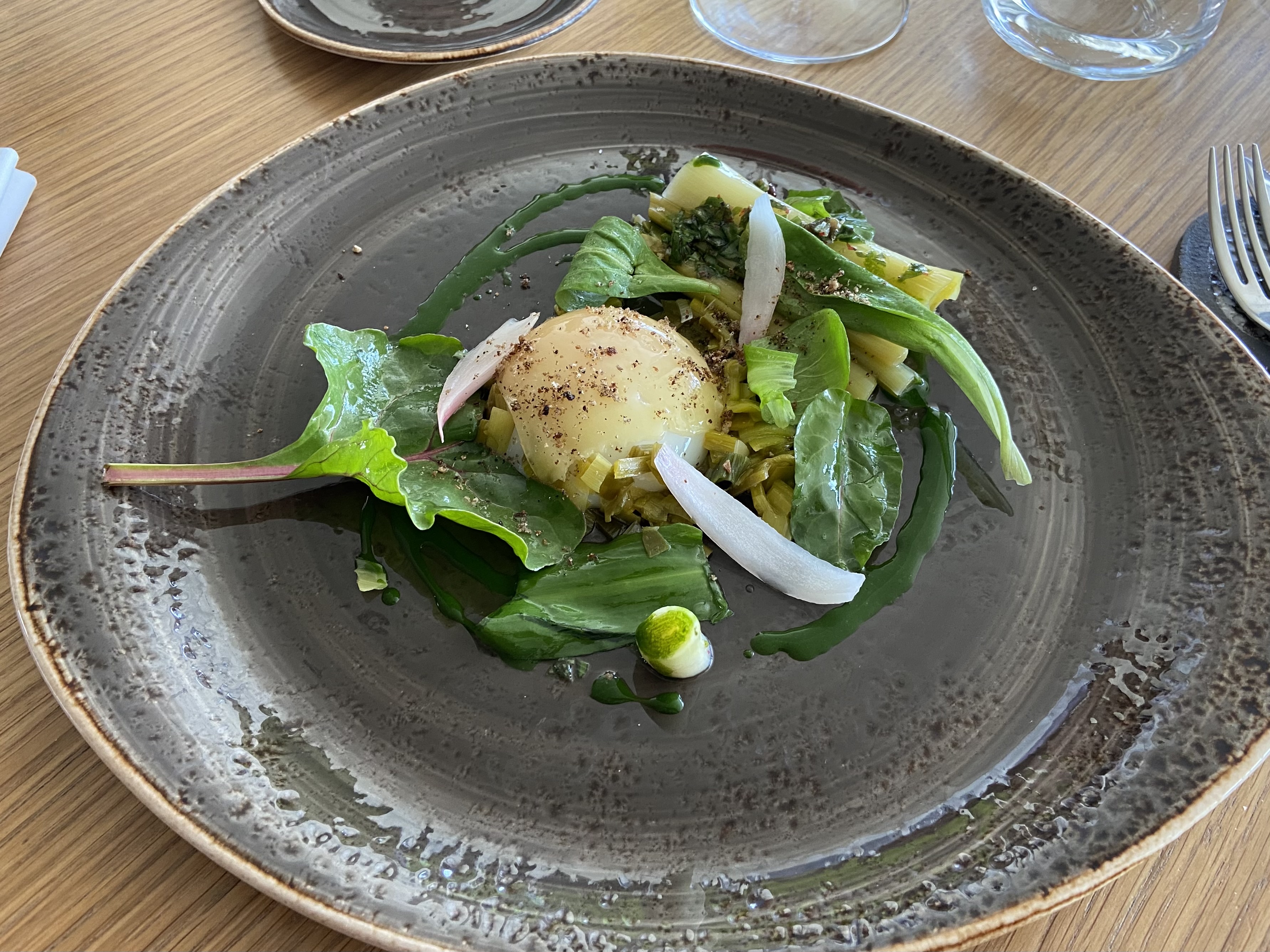 Des plats avec des produits locaux de saison qui pourraient sembler banaux à première vue, mais détrompez vous, ils sont vraiment bien cuisinés, goûteux et surprenants au niveau de l'asaisonnment et des associations. Il faut aimer les associations audacieuses - ne mettez pas un mauvais commentaire si vous n'aimez pas les desserts à base de produits habituellement salés, vous êtes prévenus. Les vins naturels proposés sont superbes, mais différents... si vous êtes plutôt classique, cela pourrait ne pas vous convenir, mais c'est à essayer !