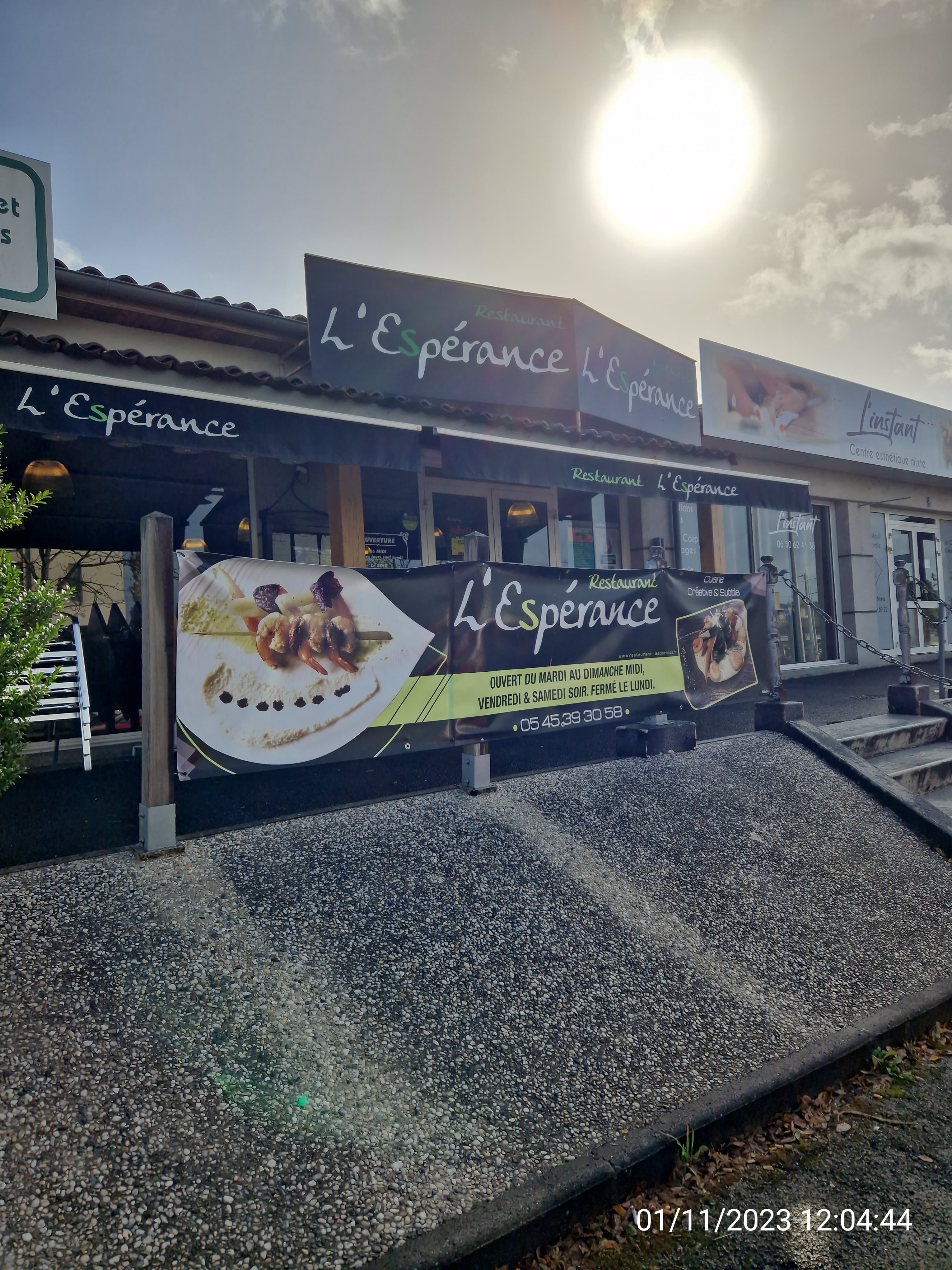 Mon expérience au restaurant L'Espérance a été exceptionnelle. Le service était correct Le cadre du restaurant était confortable, avec une atmosphère détendue et agréable. Nous avons été accueillis avec un sourire chaleureux dès notre arrivée et avons été traités avec le plus grand respect tout au long de notre repas. Dans l'ensemble, le restaurant L'Espérance est un excellent choix pour une soirée de détente et de délicieux repas. Je recommande ce restaurant. C'est un endroit où vous vous sentirez vraiment bien accueillis et appréciés. N'hésitez pas à vous y rendre pour une soirée mémorable Ps/ juste 4 étoiles car manquement sur une salade et pomme de terre rien de bien grave