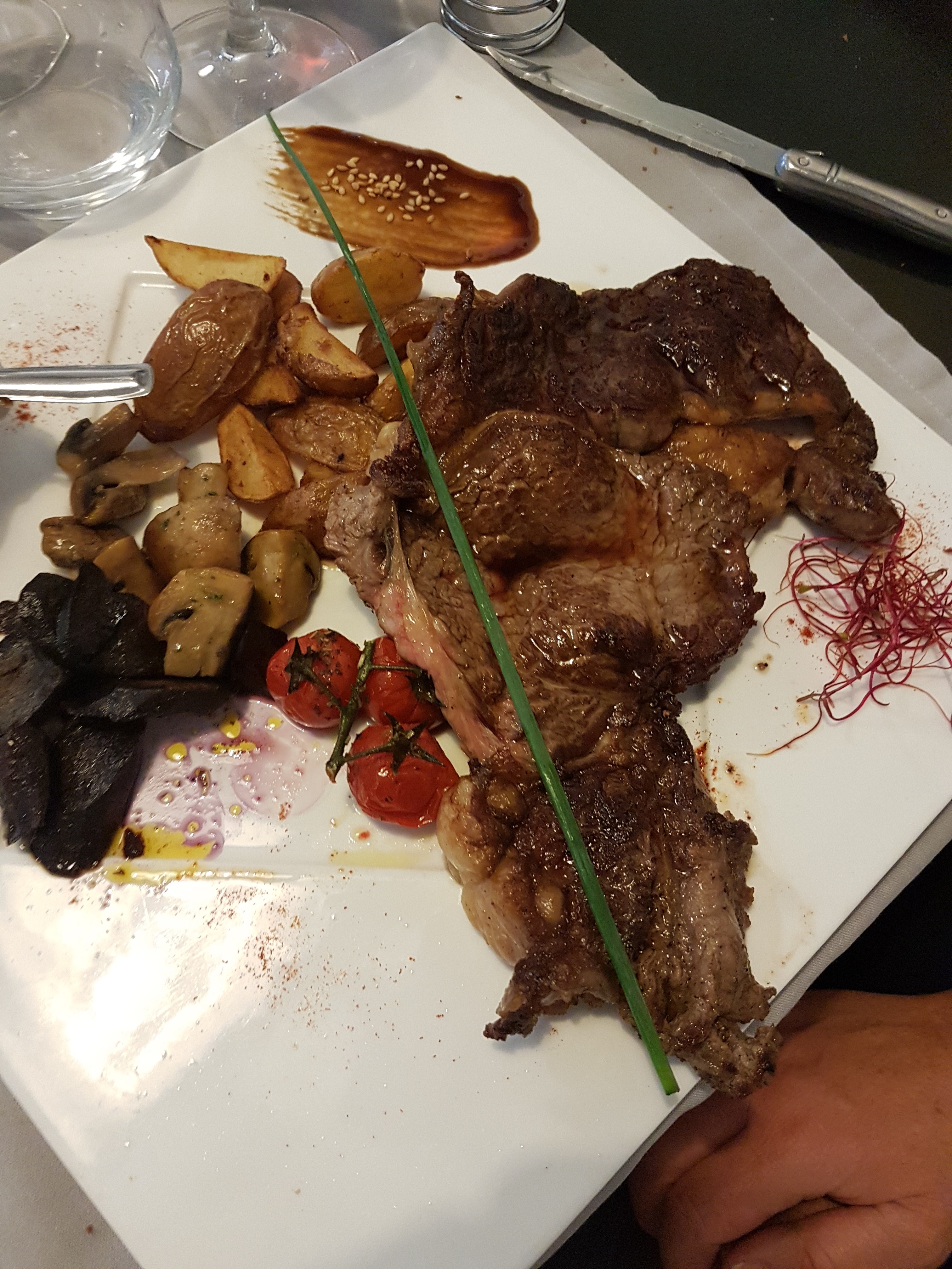 Exceptionnel! La surprise de l'entrecôte J'ai pris une entrecôte de 350g. Et elle était magique. Elle faisait vraiment 350g voir plus, elle était très bien cuite, super tendre et succulente. Par contre ne prenez pas d'entrée si vous prenez l'entrecôte, cela fait beaucoup. Bravo pour cette viande. je reviendrai en famille