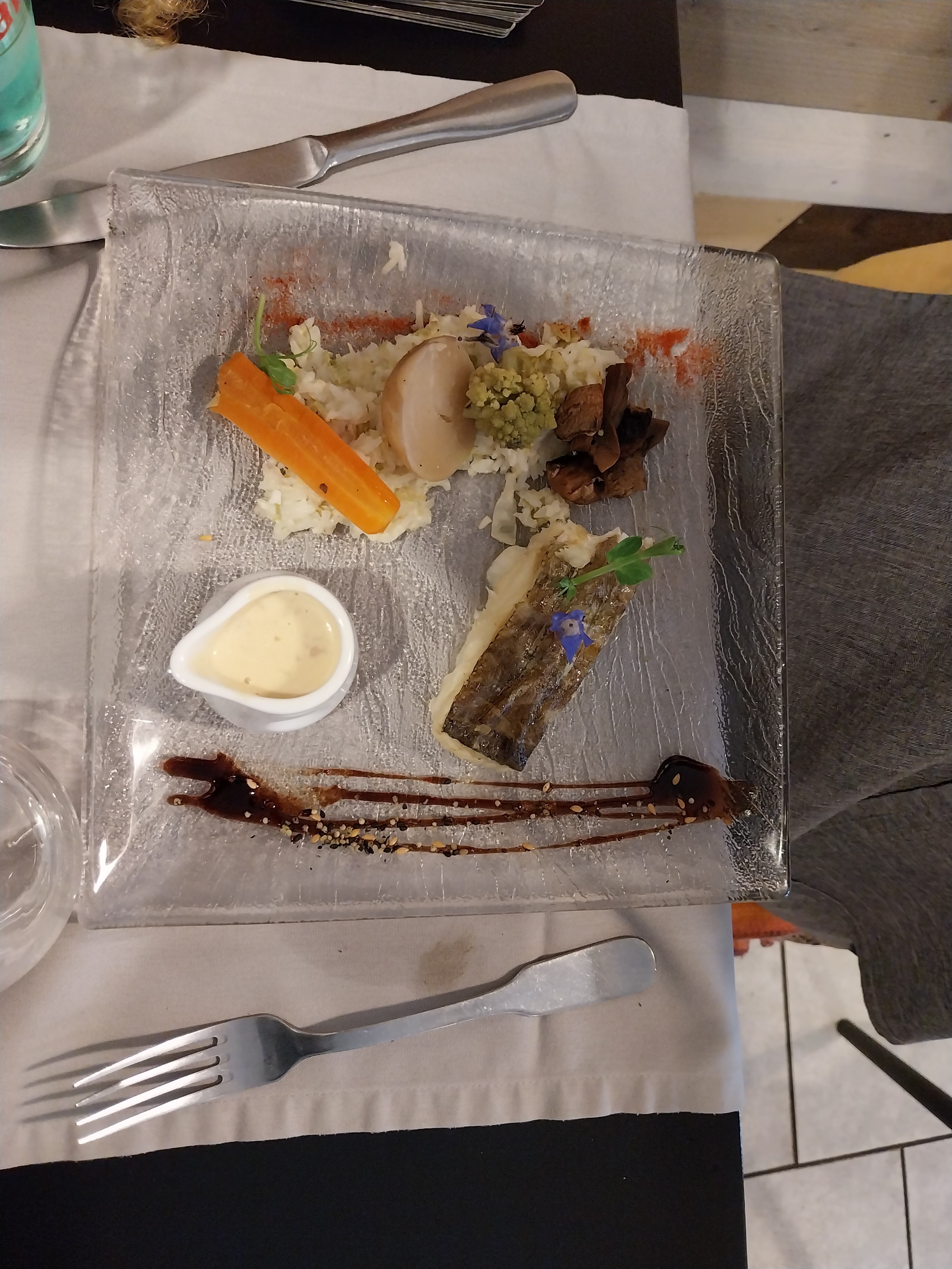 La sauce aux crêpes est divinement bonne ! Avec une entrecôte très tendre. Ma compagne a pris un poisson super bon et un risotto exceptionnelle. Et le chef est très sympathique. Je recommande !