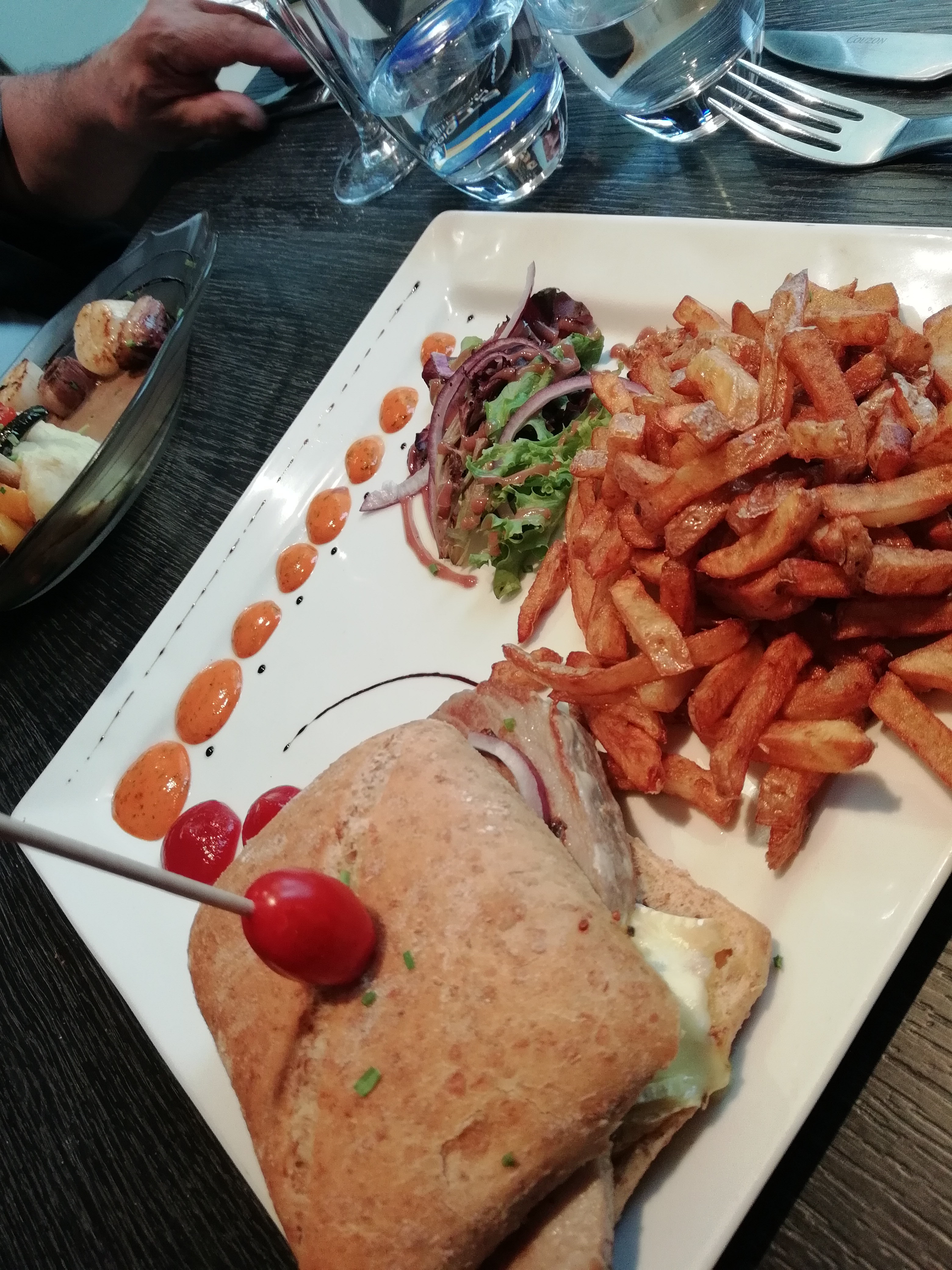 Très bien et très bon, mais beaucoup d'attente entre prise de commande et service, je pense qu'il manque d'une personne au service et peut être en cuisine, car trop de monde en terrasse surtout de l'autre côté de la rue. Beaucoup de kilomètres parcourus.